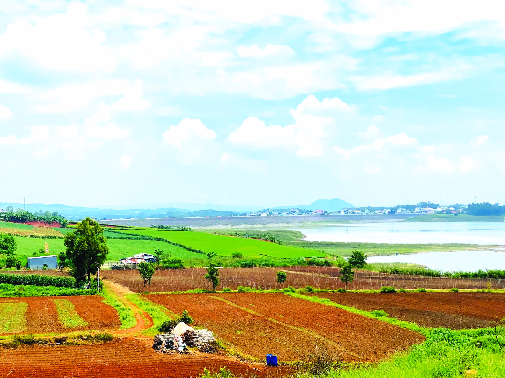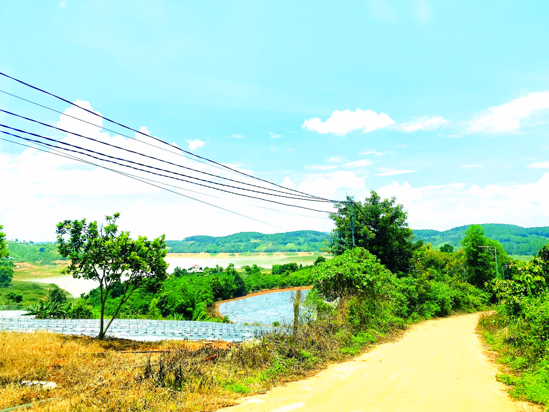 Để đến thác Jraiblian, chúng tôi theo tuyến quốc lộ 28B trên cung đường Lương Sơn - Đại Ninh đèo dốc gập ghềnh. Nhà cửa đông đúc dần bỏ lại sau lưng, trước mắt tôi hiện ra những rẫy nương xanh mướt nằm bên triền đất nhấp nhô ven hồ thủy điện Đại Ninh. Lòng hồ xanh ngắt trải dài hun hút, hòa vào màu xanh của mây trời, cây cỏ. Trên đường chính, thỉnh thoảng xuất hiện vài con đường đất rẽ xuống hồ, hai bên là những triền hoa ngũ sắc cao quá đầu người, khoe sắc màu chúm chím, tỏa mùi hương thu hút ong bướm bay lượn rập rờn.