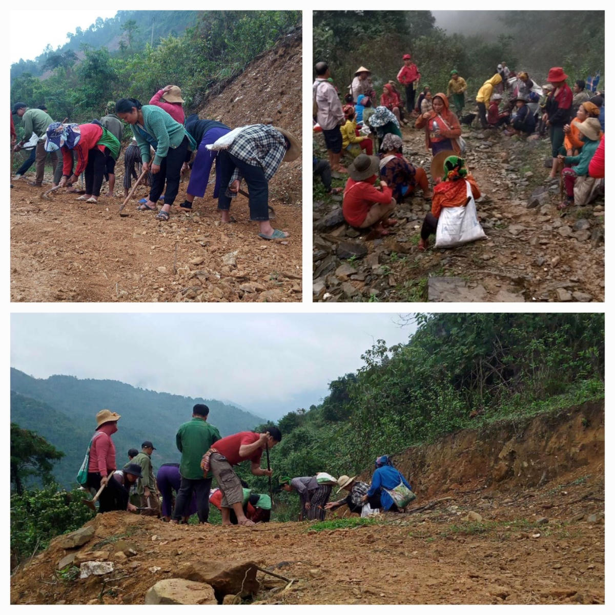 Sau khi đầu tư hơn 70 tỷ đồng để giải phóng mặt bằng, chưa triển khai các hạ tầng kỷ thuật thì dự án trên bị tạm dừng. Vì thế, con đường vẫn nguyên sơ như cũ, và mỗi khi mưa lớn, nước kèm theo đất đá từ trên núi đổ xuống, chất thành từng khối chắn ngang đường. Nhiều chỗ dòng nước làm xói mòn, tạo thành những hố sâu. Không có máy móc hỗ trợ, người dân chỉ có thể khắc phục bằng cuốc, xẻng.