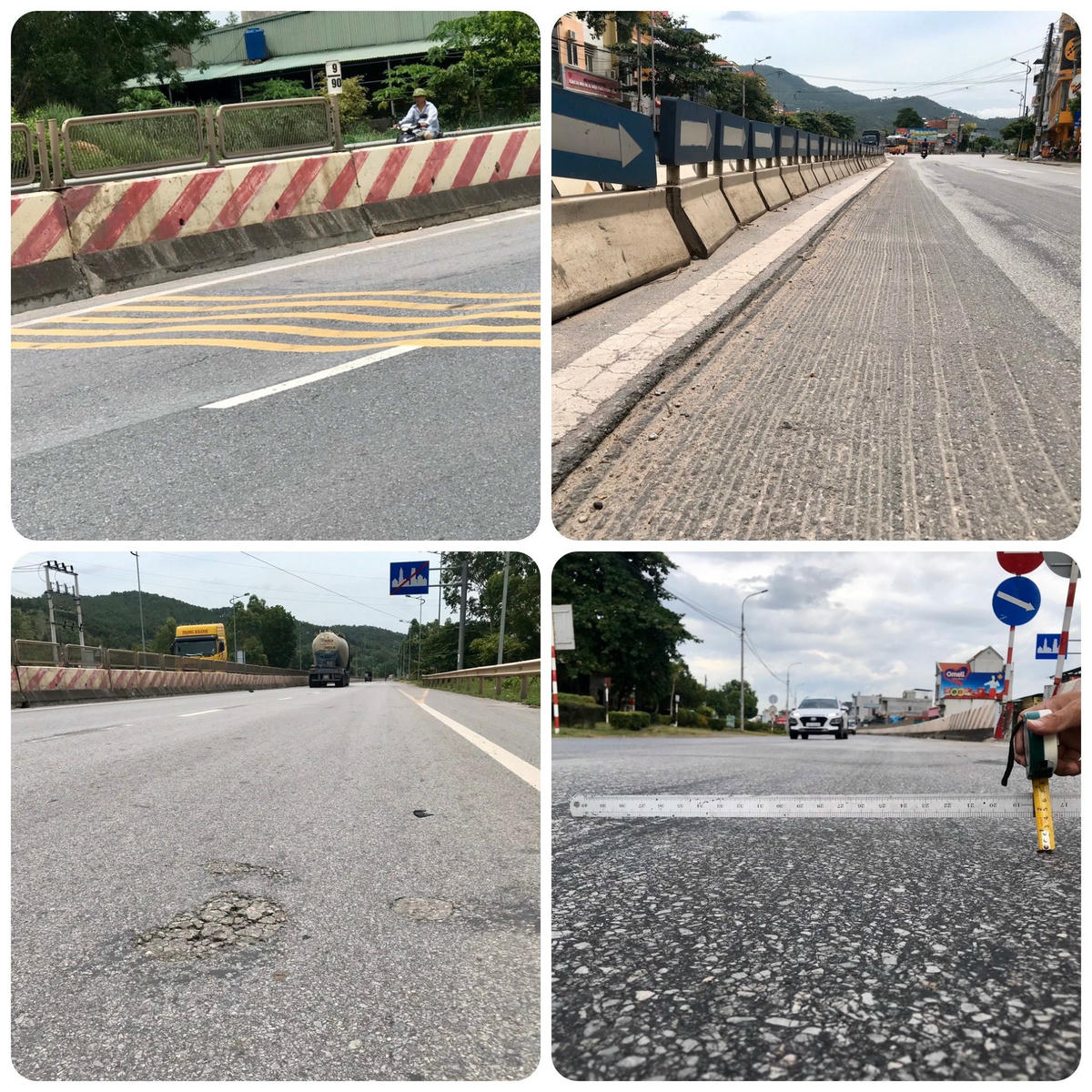 Tình trạng lún sâu, hằn vết bánh xe xảy ra trên nhiều đoạn của tuyến đường. Có những vị trí mặt đường lún sâu tới 6-7 cm, gây mất an toàn giao thông trên tuyến.