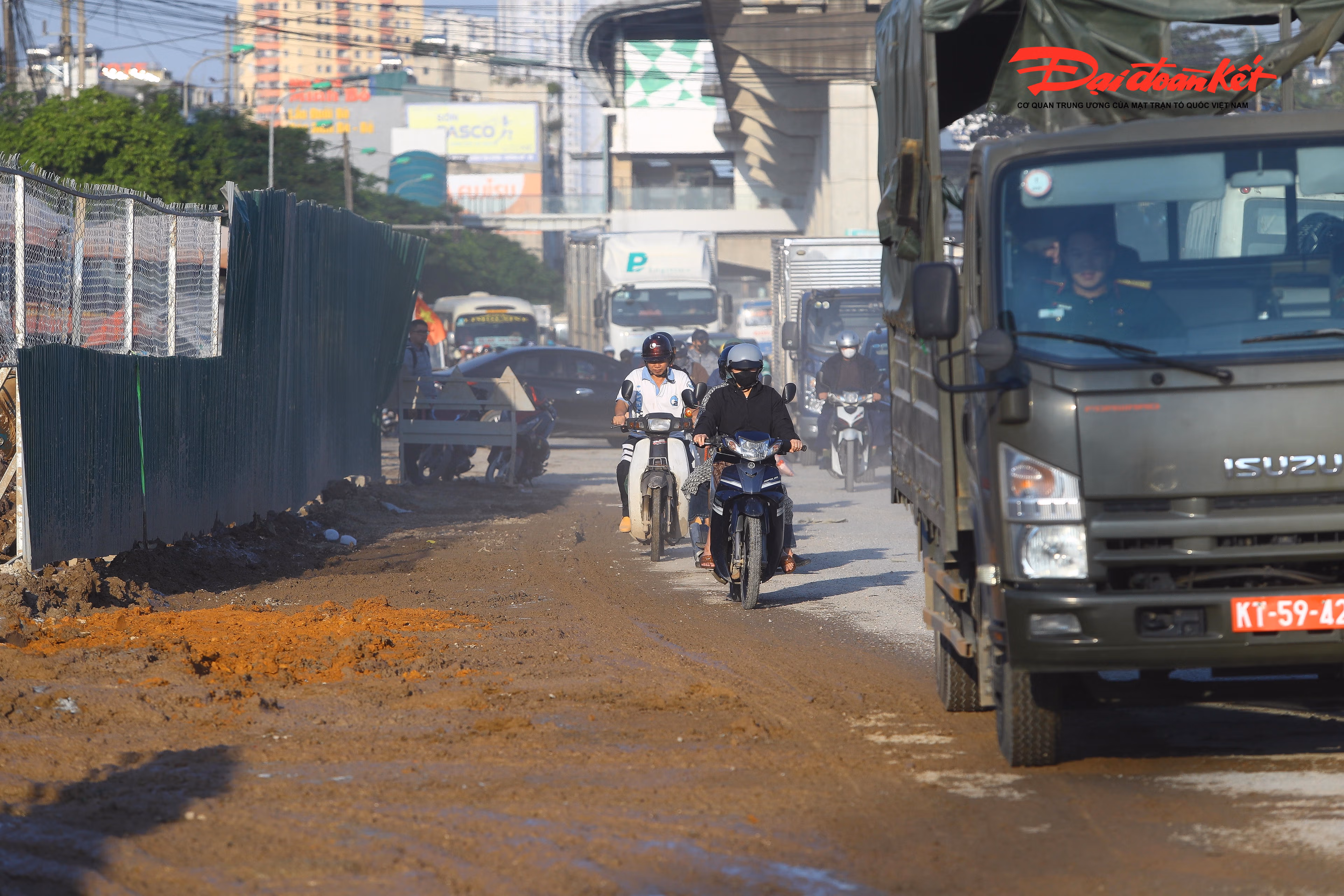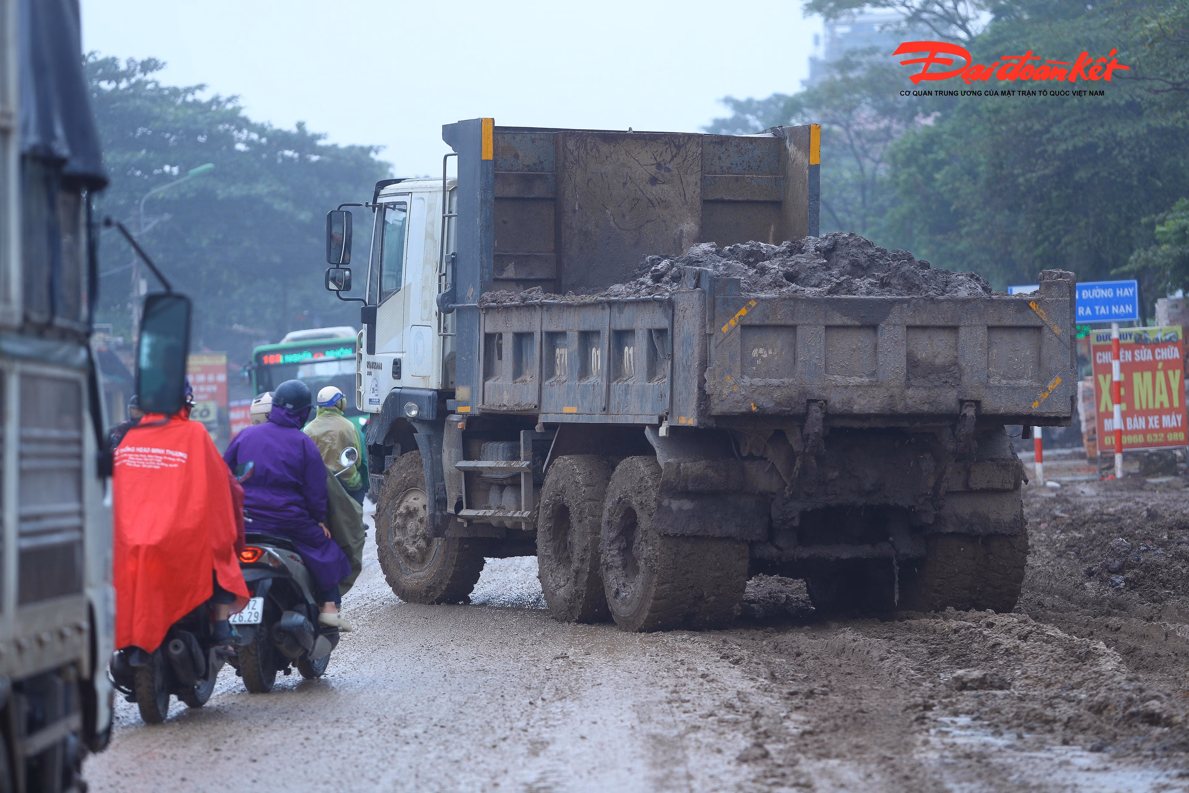 Xe tải hạng nặng chở đất ra vào tấp nập để chở bùn, đất thường xuyên cắt mặt các phương tiện gây mất an toàn giao thông.