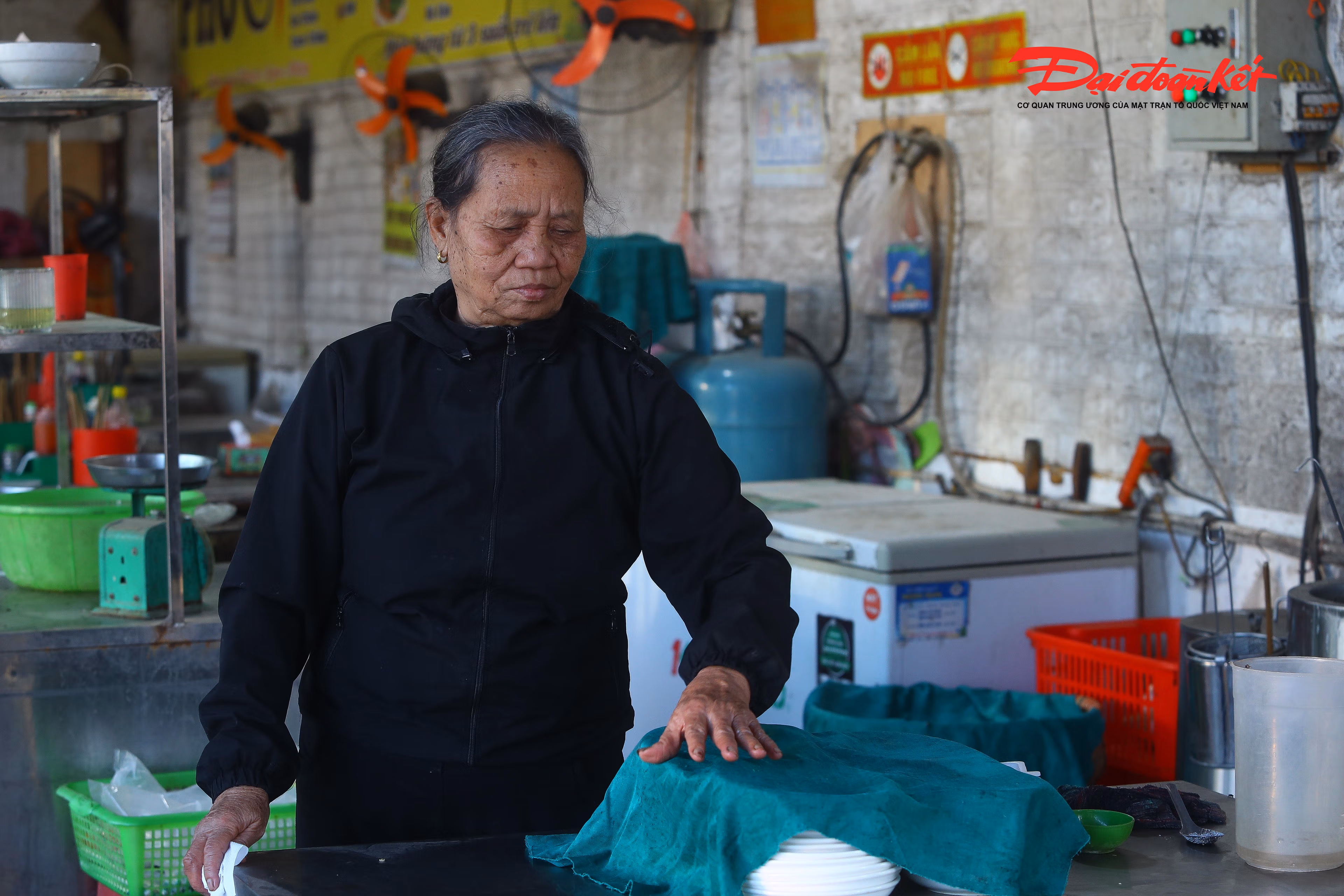 Dù nằm cách khu vực thi công khoảng 200m nhưng công việc kinh doanh cửa hàng ăn uống gần cầu Tuân (phường Yên Nghĩa) của bà Trương Thị Chiến (71 tuổi, quê Nam Định) cũng chịu nhiều ảnh hưởng.