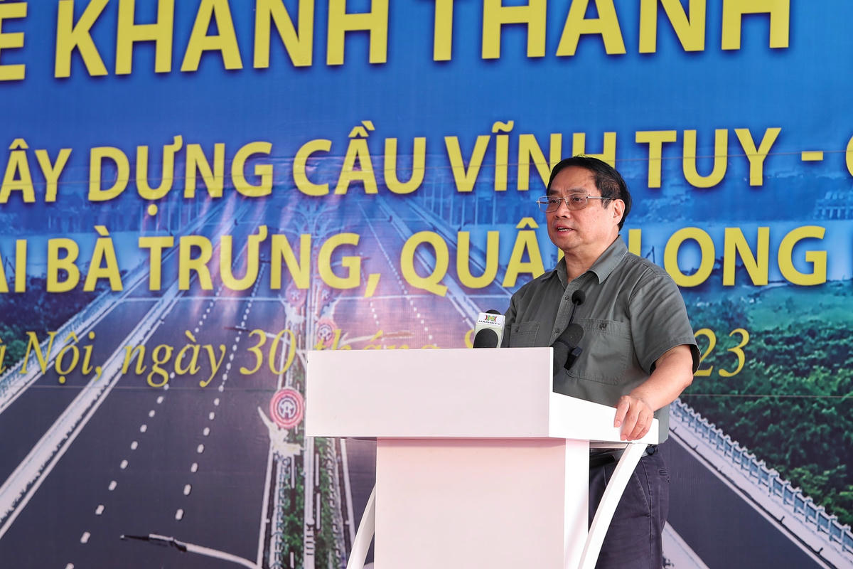 Phát biểu tại lễ thông xe, Thủ tướng Chính phủ Phạm Minh Chính cho biết thời gian qua, thành phố Hà Nội đã triển khai nhiều giải pháp đầu tư đồng bộ hệ thống kết cấu hạ tầng giao thông, theo đúng quy hoạch đến năm 2030, tầm nhìn năm 2050, trong đó, cầu Vĩnh Tuy giai đoạn 2 là một trong những dự án giao thông trọng điểm của Hà Nội.