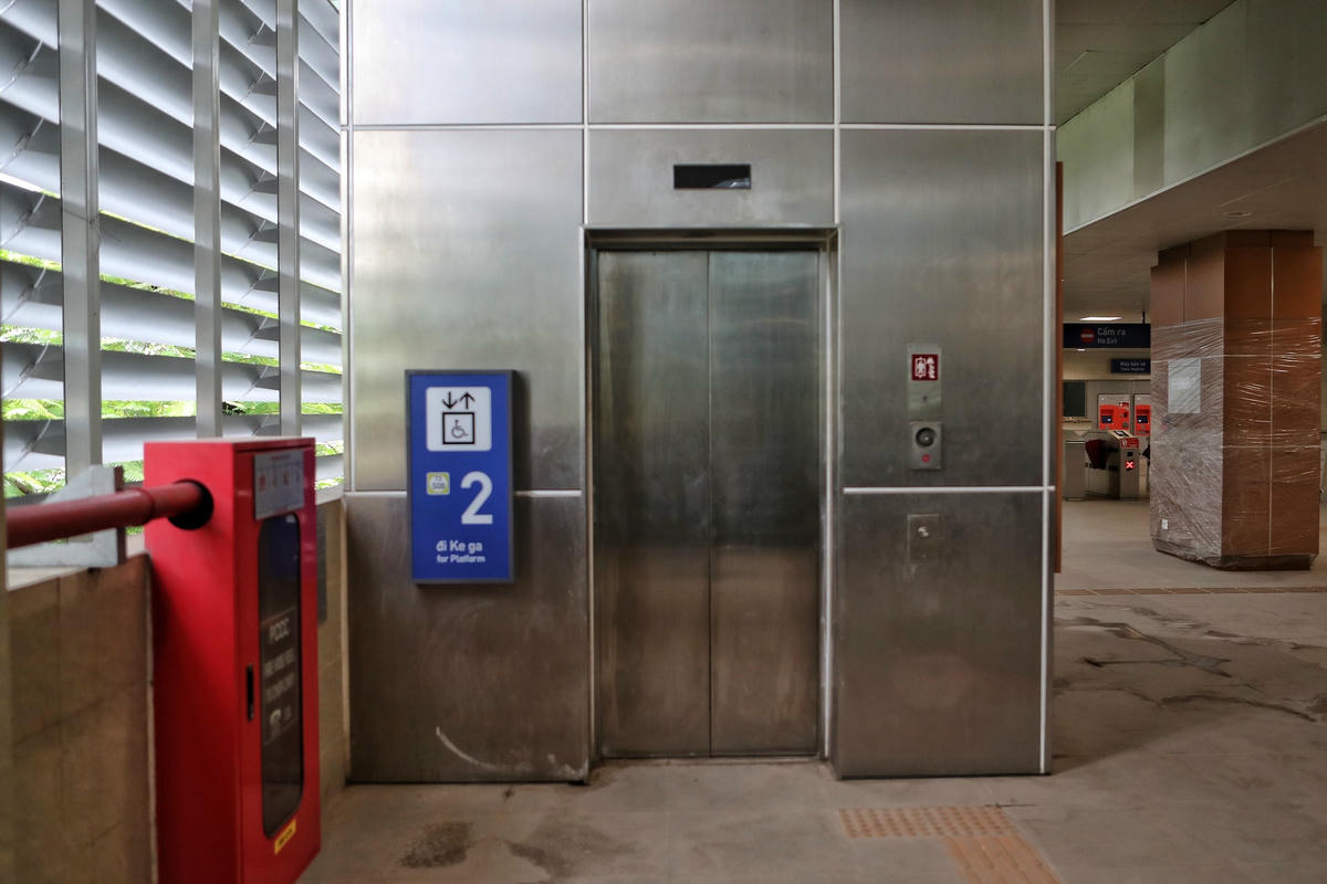 Hành khách có thể tiếp cận nhà ga trên cao bởi 4 lối lên xuống từ 4 hướng trên vỉa hè ở hai bên đường. Hệ thống thang bộ, thang cuốn và thang máy tiện lợi cho cả người khuyết tật, người cao tuổi, phụ nữ mang thai và trẻ em.