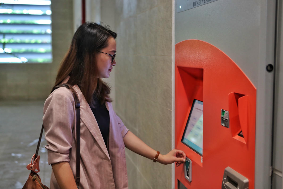 Với hệ thống thu vé tự động AFC, khi đến ga bất kỳ của Tuyến, hành khách có thể chọn mua nhiều loại thẻ/vé. Tiếp đến, hành khách sẽ đi qua cửa kiểm soát được thực hiện bằng hệ thống kiểm soát tự động. Nếu thẻ/vé hợp lệ, cửa sẽ tự động mở cửa để hành khách đi qua. Hành khách đi theo biển chỉ dẫn đúng hướng tàu theo lịch trình và di chuyển lên khu vực đợi tàu. Chú ý giữ lại thẻ/vé để lặp lại các bước soát thẻ/vé một lần nữa tại Ga đến.