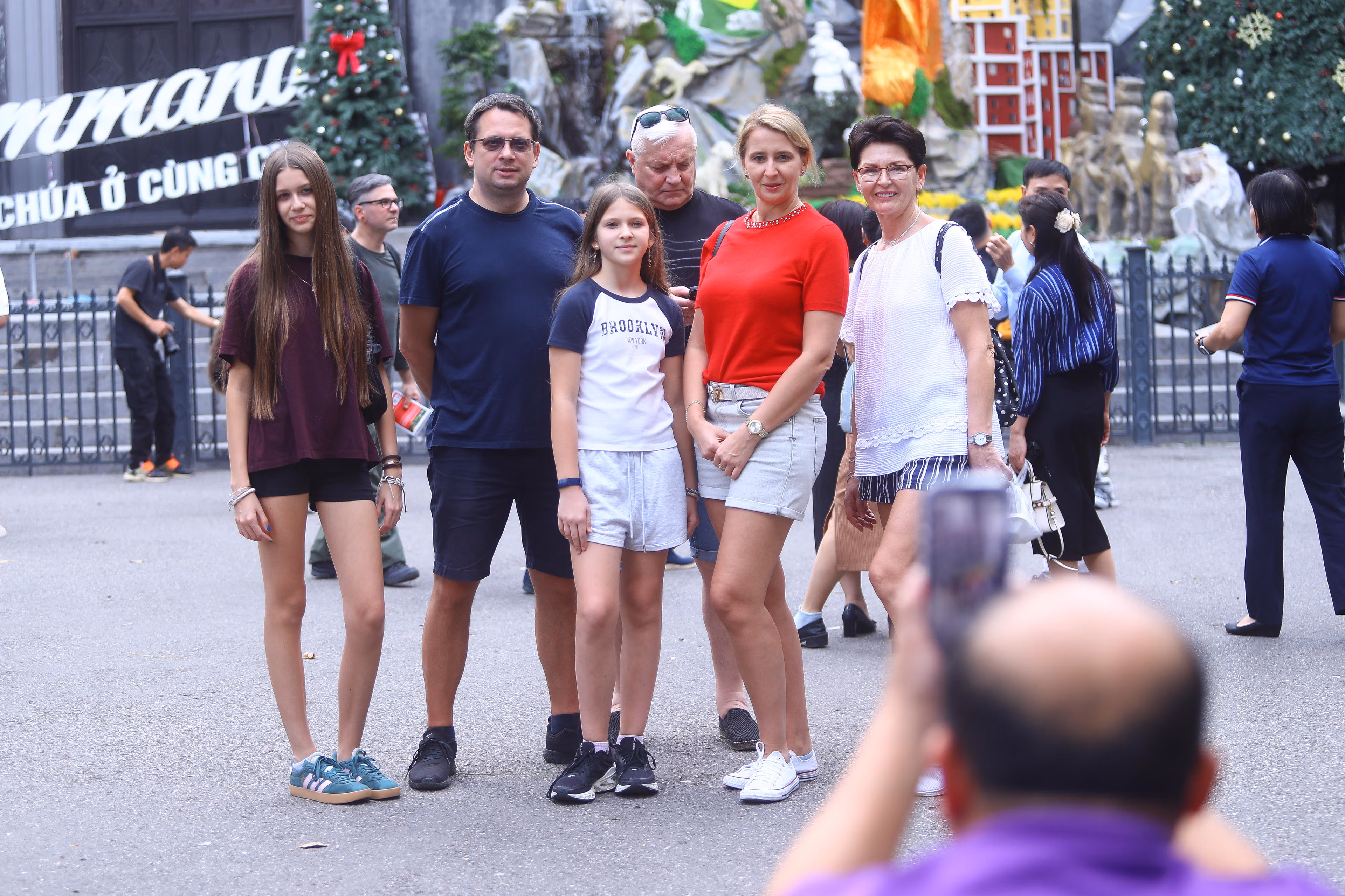Du khách nước ngoài nườm nượp đổ về Nhà thờ Lớn Hà Nội đón không khí Noel sớm