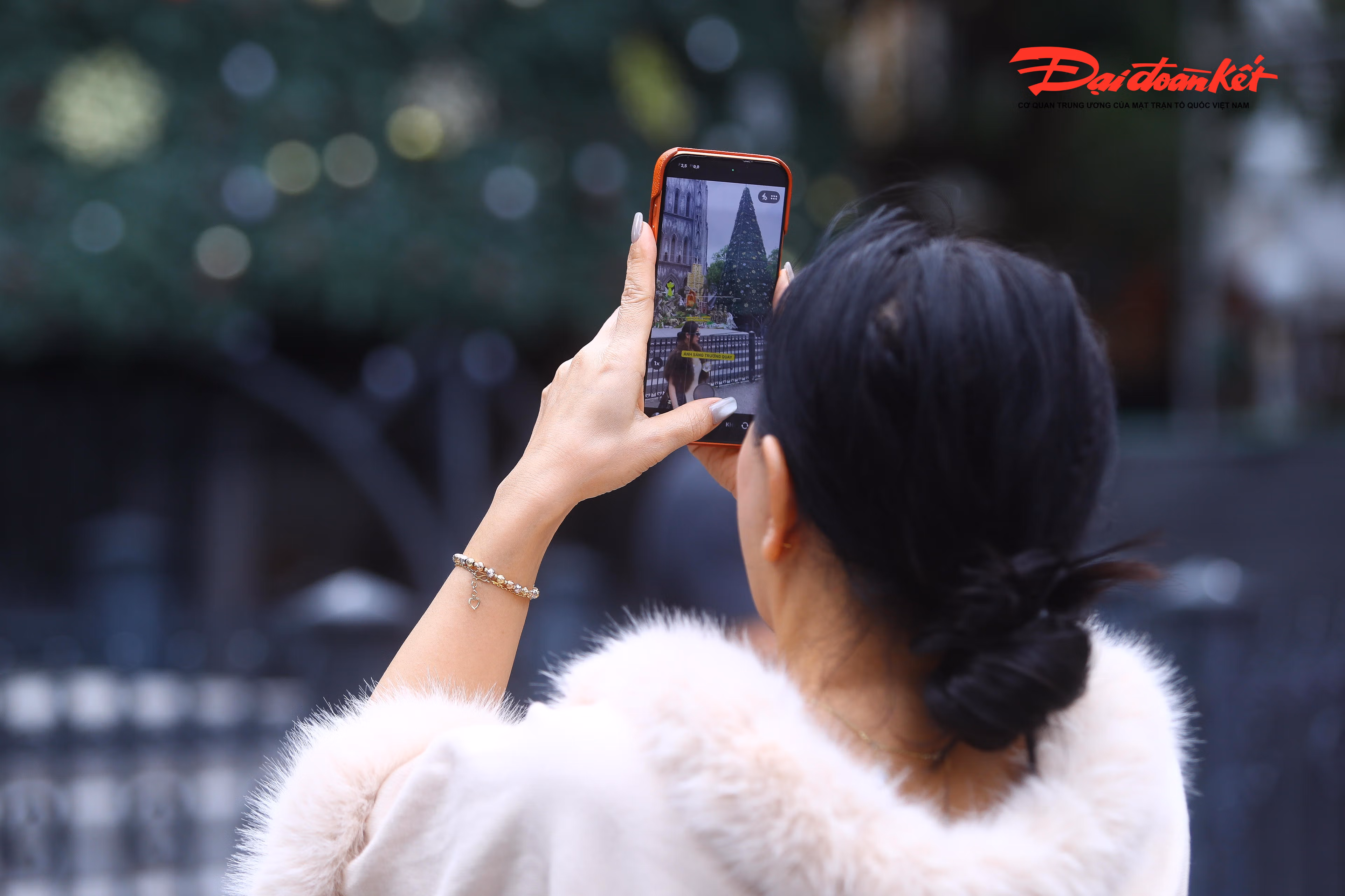 Đứng trước vẻ đẹp của ngôi nhà thờ cổ kính nhất Thủ đô nhiều du khách đã lập tức ghi lại những hình ảnh lung linh sắc màu.