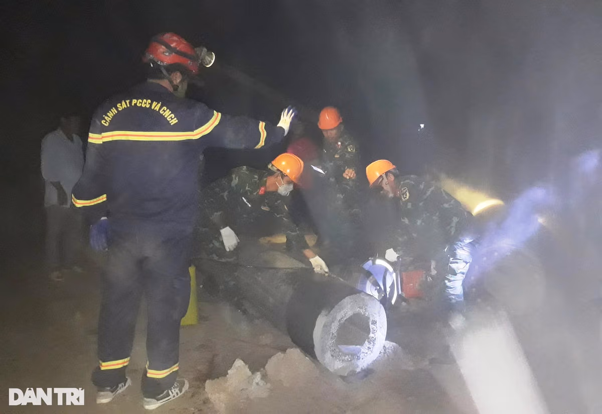 Hiện, cứu hộ làm sạch những mét bùn đất cuối cùng trong lòng ống thép bằng phương án khoan xoáy nước áp lực lớn làm tơi đất và khoan guồng xoắn nhằm phá vỡ lớp đất có kết cấu chặt.