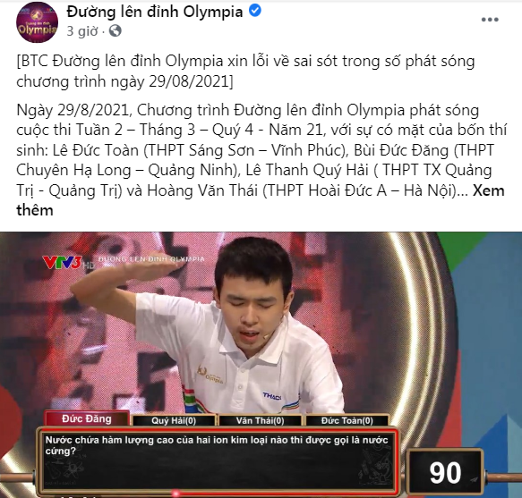 Chỉ trong ngày 29/8, trên trang fanpage chính thức của chương trình Đường lên đỉnh Olympia đã liên tiếp đăng 2 bài đính chính thông tin, xin lỗi khán giả về sai sót.