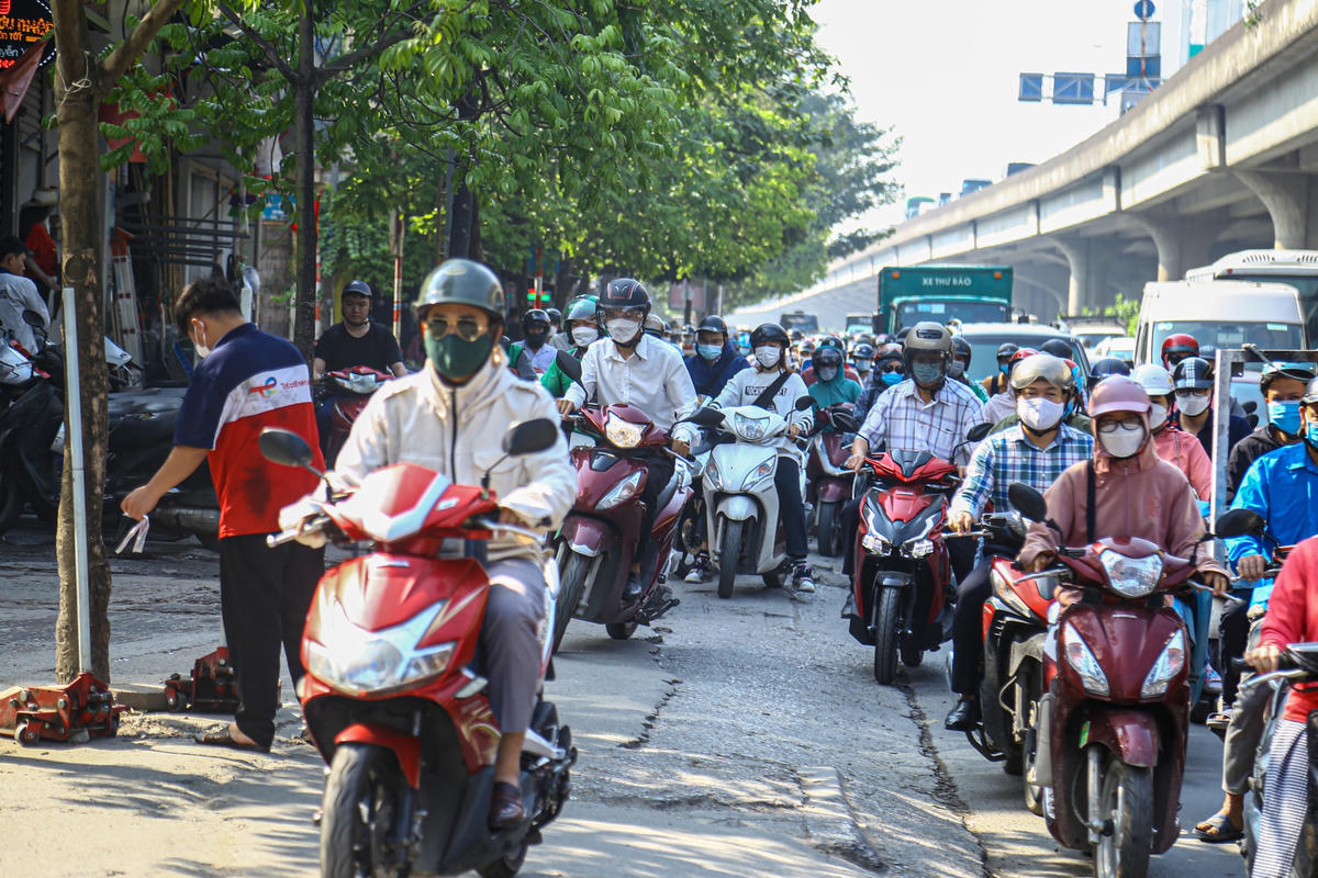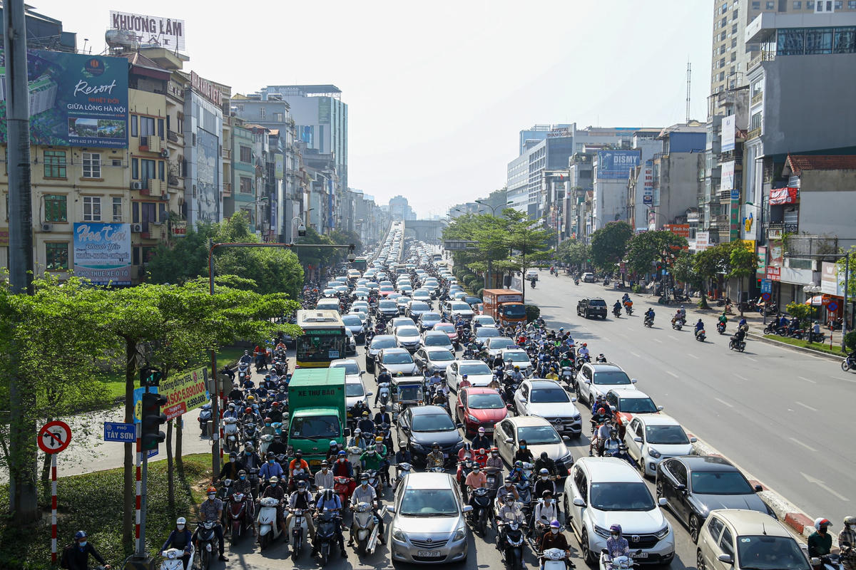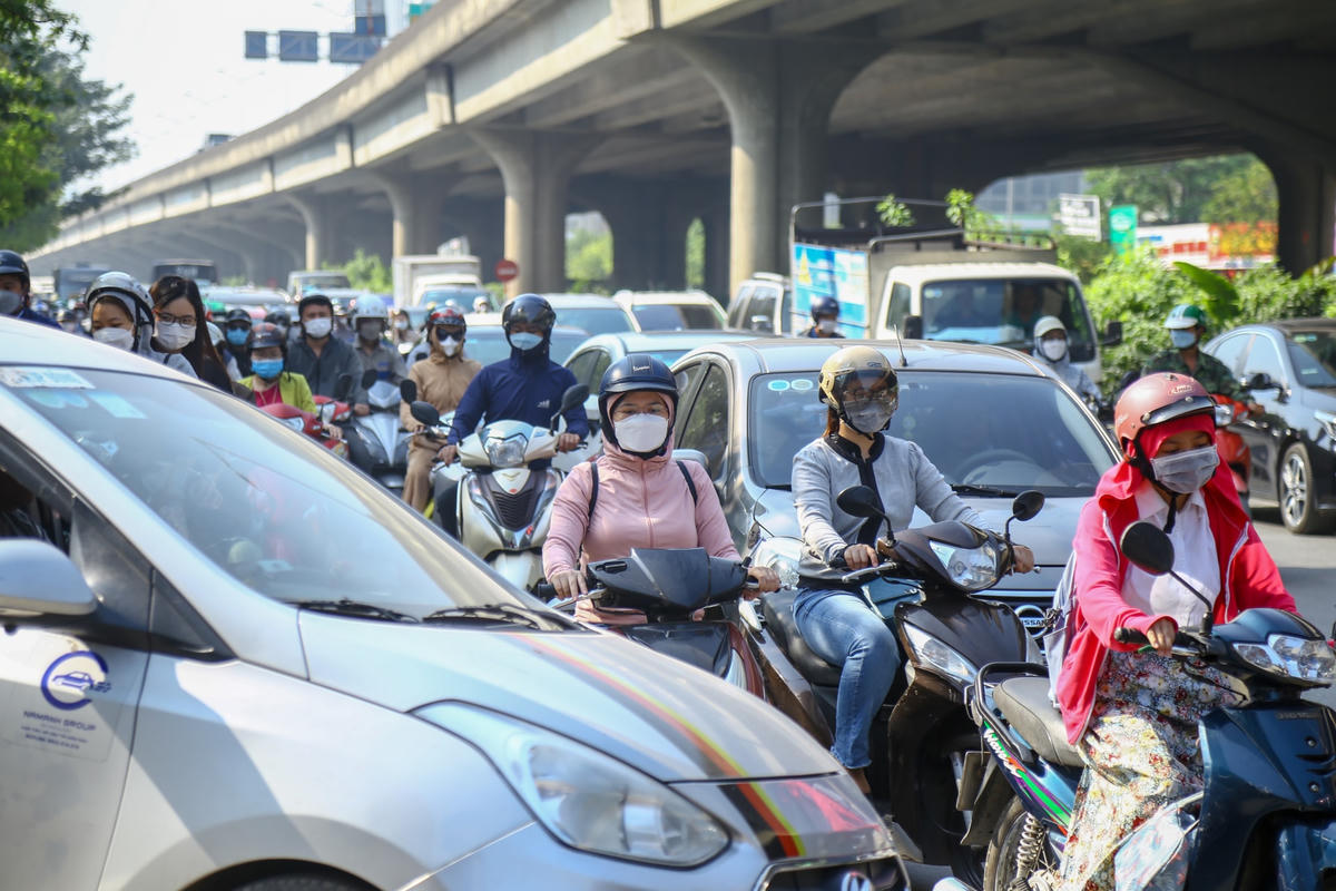 Theo ghi nhận của Đại Đoàn Kết Online, sau kỳ nghỉ lễ nhiều tuyến đường của Hà Nội lại lâm vào cảnh ùn tắc kéo dài. Đặc biệt tại nhiều điểm như Nguyễn Trãi, Nguyễn Xiển, Ngã Tư Sở, Trường Chinh... các phương tiện chen chúc nhau nhau để di chuyển trên đường.Tại đường Trần Phú (Hà Đông) lượng phương tiện di chuyển qua cung đường này luôn trong tình trạng đông đúc.Nhiều người phải chật vật len lỏi để di chuyển.Đặc biệt, do tuyến đường này ùn tắc nghiêm trọng các phương tiện xe máy leo lên vỉa hè để di chuyển. Theo đó, do không cẩn thận hai xe máy đã va chạm với nhau.Lượng phương tiện tràn về đường Nguyễn Xiển (khu vực nút giao Nguyễn Xiển - Nguyễn Trãi) khiến giao thông liên tục ùn ứ.Một số tuyến đường như Trường Chinh, tình trạng ùn tắc kéo dài hàng tiếng đồng hồ, những chiếc ô tô lưu thông qua đây gần như bị “tắc cứng” trước lượng xe máy quá đông lưu thông về hướng đường Tây Sơn và đường Láng.Dòng người và xe cộ nêm cứng ở trên đường.Người dân "phi" xe máy lên cả vỉa hè.Tại nhiều tuyến đường khác tại Hà Nội cũng trong tình trạng tương tự, lượng phương tiện đông đúc ùn ứ kéo dài.