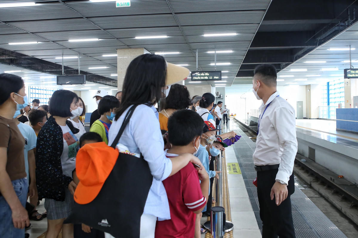 Theo ghi nhận của PV Báo Đại Đoàn Kết Online, trong sáng ngày Quốc khánh 2-9, hàng chục nghìn hành khách đổ về các nhà ga đường sắt Cát Linh - Hà Đông để tham quan và trải nghiệm. Hầu hết, các chuyến tàu đều chật kín hành khách.Anh Nguyễn Văn Giang quê ở huyện Từ Sơn, tỉnh Bắc Ninh cho biết: “Được nghỉ lễ dài ngày, tôi xuống Hà Nội để thăm bạn bè và anh em trong họ hàng. Dù chỉ cách Hà Nội chừng vài chục cây số nhưng do bận công việc nên không thể đi xuống trải nghiệm được mà chỉ biết thông tin qua báo đài”.Theo anh Giang, đi trải nghiệm rồi mới thấy đường sắt Cát Linh - Hà Đông đúng là một loại hình vận tải hành khách tiện lợi và hiện đại. Không chỉ đem lại sự hài lòng cho hành khách mà còn là một biểu tượng đẹp của Hà Nội.Hầu hết các chuyến tàu đều đông nghịt hành khách.Các cháu nhỏ được ông bà, bố mẹ đưa đi tàu rất hào hứng.Theo ông Vũ Hồng Trường, Tổng Giám đốc Hanoi Metro, chỉ tính đến 11h ngày 2/9, tuyến đường sắt Cát Linh - Hà Đông đã có gần 20.000 lượt hành khách đến thăm quan trải nghiệm."Để phục vụ nhu cầu đi lại, trải nghiệm cho hành khách, 100% nhân viên công ty được huy động đã có mặt tại tất cả các nhà ga để hướng dẫn cho nhiều hành khách mua vé" , Tổng Giám đốc Hanoi Metro cho hay.Thậm chí, tại một số thời điểm phía bên trong nhà ga Yên Nghĩa chật cứng người, nhiều hành khách phải ra ngoài để chờ tới lượt.Nhiều người đã quay video để giới thiệu với người thân.Dù tuyến đường sắt đã hoạt động từ lâu nhưng nhiều người dân đến nay mới có cơ hội trải nghiệm.Mặc dù chỉ cách 10 phút mỗi chuyến nhưng không ít hành khách vẫn phải chờ tàu.