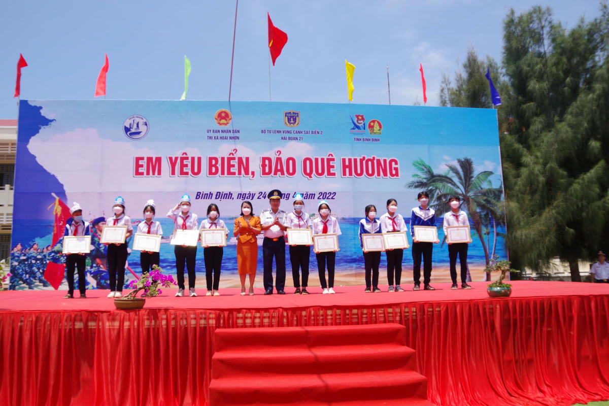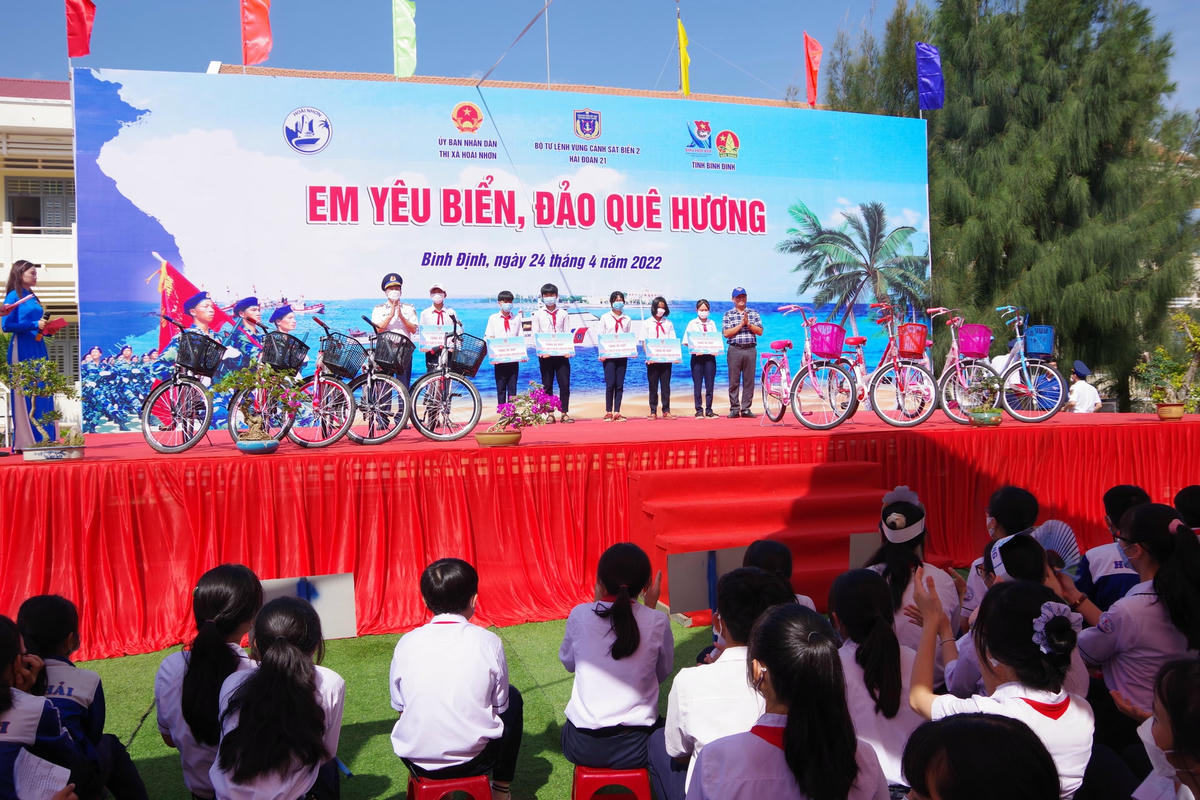 Tại cuộc thi “Em yêu biển đảo quê hương” Hải đoàn 21 cùng Công ty Ấn Sơn, tỉnh Quảng Ngãi đã tặng 20 xuất học bổng và 10 xe đạp cho các em học sinh của các trường trung học cơ sở Thị xã Hoài Nhơn, nhằm động viên, giúp đỡ các em học sinh có hoàn cảnh khó khăn vươn lên học giỏi.
