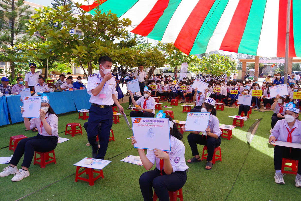 Còn em La Thu Tiền Trường THCS xã Hoài Hải cho rằng, “Qua cuộc thi chúng cháu tiếp cận và tìm hiểu sâu hơn về biển đảo, về các chú Cảnh sát biển, thấy được trách nhiệm của tuổi trẻ chúng cháu”.