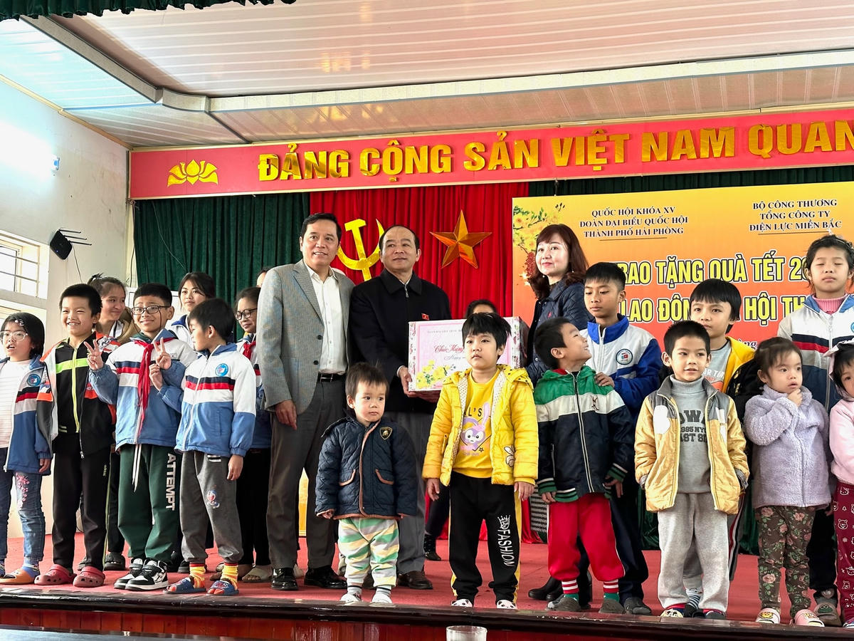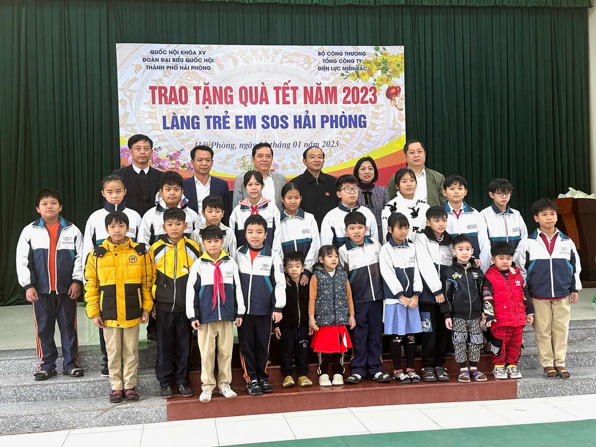 Cũng trong buổi sáng 3/1/2023, đoàn công tác Tổng công ty Điện lực miền Bắc và Đoàn đại biểu Quốc hội thành phố Hải Phòng đã đến Làng nuôi dạy trẻ mồ côi Hoa Phượng, Trường Lao động - Xã hội Thanh Xuân, Làng Trẻ em SOS Hải Phòng để trao tặng những phần quà Tết ý nghĩa đến các em nhỏ mồ côi, bệnh tật đang được nuôi dưỡng và chăm sóc tại đây.