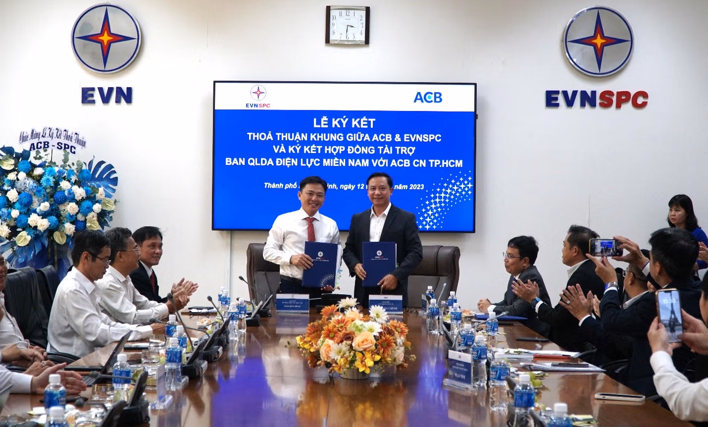 Chiều ngày 12/12/2023 tại trụ sở Tổng công ty Điện lực miền Nam (EVNSPC) diễn ra lễ ký kết Thỏa thuận khung giữa EVNSPC và Ngân hàng TMCP Á Châu (ACB), đồng thời ký kết Hợp đồng tài trợ giữa Ban Quản lý dự án Điện lực miền Nam và ACB chi nhánh TP.HCM.