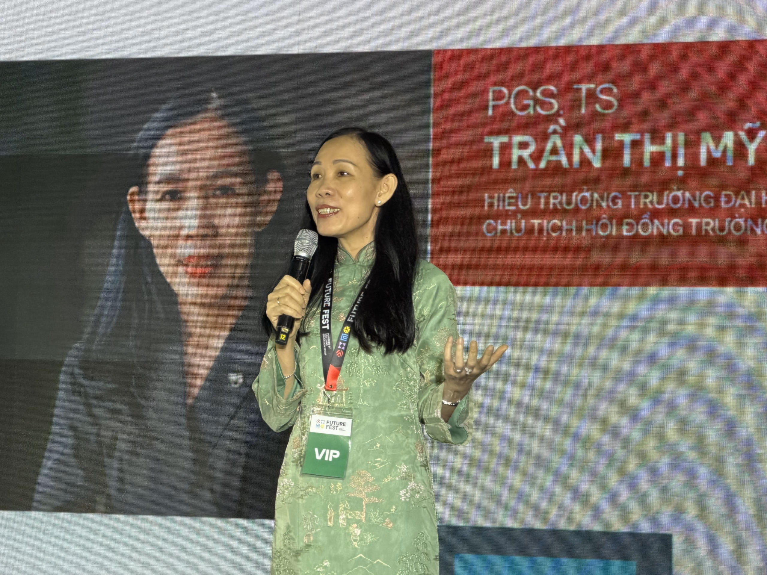 Từ đó, PGS.TS Trần Thị Mỹ Diệu khái quát triết lý giáo dục trong kỷ nguyên AI xoay quanh ba yếu tố: lấy con người làm trung tâm, đề cao tính trung thực trong học tập và rèn luyện, đồng thời xây dựng bản lĩnh để không chỉ thích ứng mà còn tạo ra giá trị cho xã hội. Theo bà, “vững gốc” là nền tảng, còn “vươn xa” là định hướng phát triển, giúp con người bước vào tương lai một cách chủ động và bền vững.