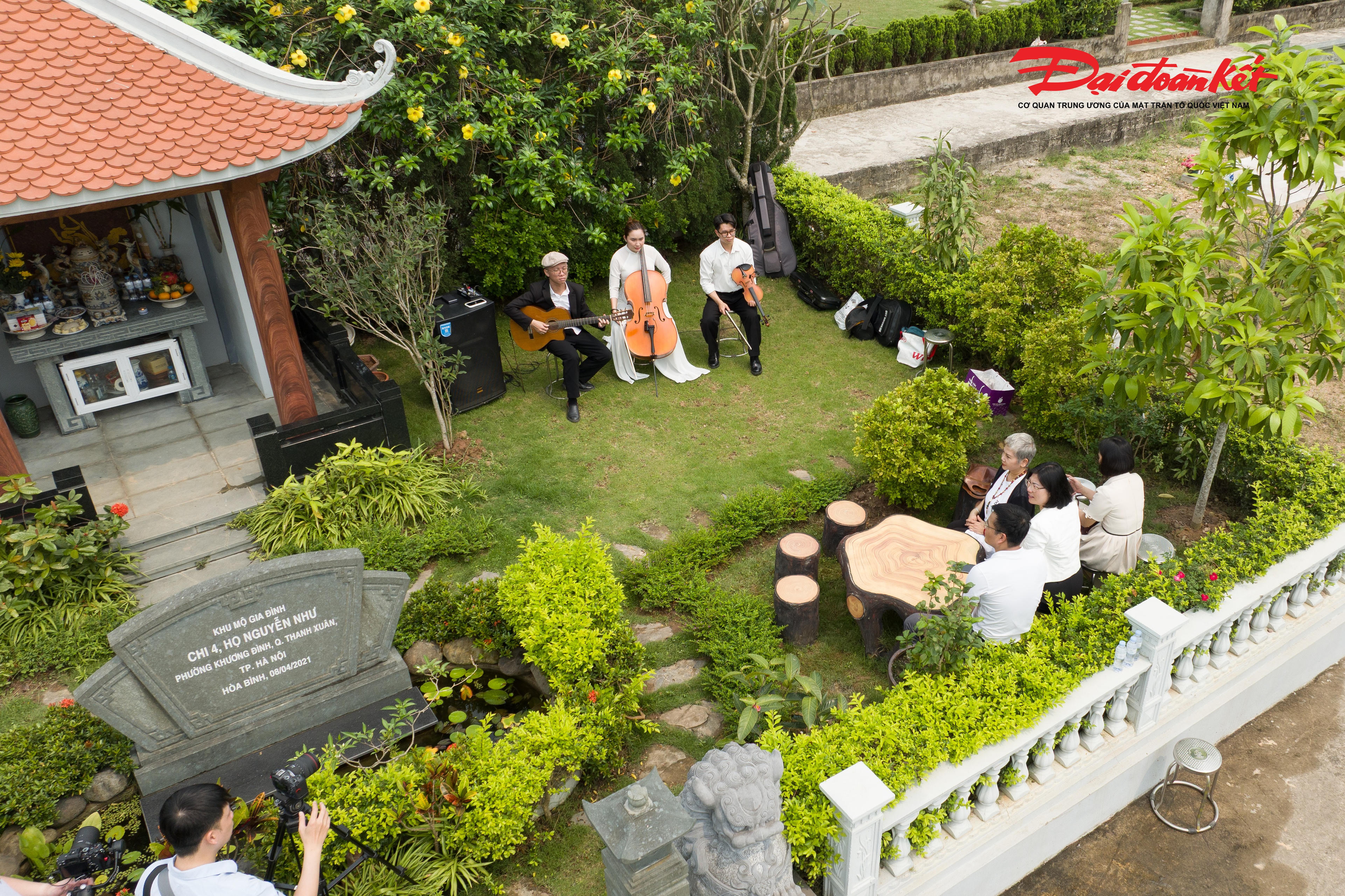 Khoảnh khắc ấy càng trở nên đặc biệt khi Ban Quản lý Công viên bất ngờ dành tặng gia đình một bản nhạc gắn liền với ký ức của người chồng. Giai điệu vang lên giữa không gian tĩnh lặng, sâu lắng, như kéo ký ức trở về. Dưới nền nhạc, bà Mai lật từng trang nhật ký, có lúc ngập ngừng, nước mắt lặng lẽ rơi.