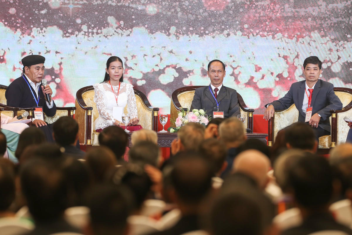 Đến từ tỉnh Sóc Trăng, bà Hà Ngân Kim Tới, Chủ tịch Ủy ban MTTQ xã Liêu Tú, huyện Trần Đề đã mang đến Hội nghị những câu chuyện đầy cảm xúc trong việc triển khai các chương trình thiện nguyện hướng đến người nghèo, những người yếu thế.