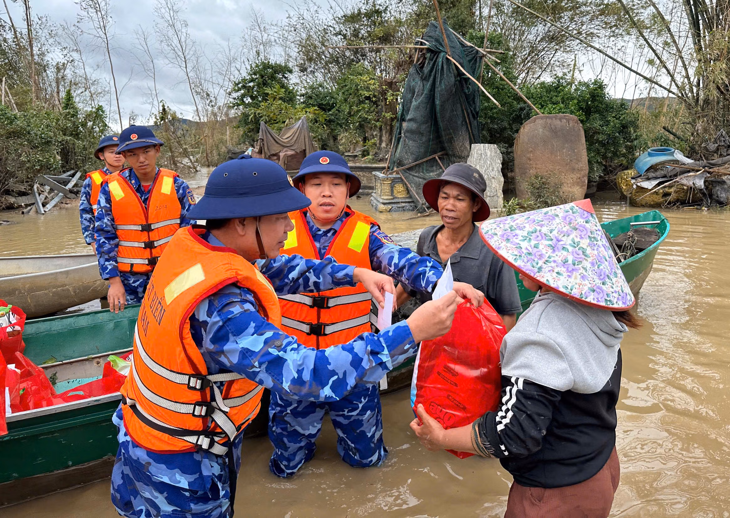 Sáng 22/11, Bộ Tư lệnh Vùng Cảnh sát biển 2 cho biết, đơn vị đã phối hợp với Ban Tuyên giáo và Dân vận Tỉnh ủy Gia Lai đến thăm hỏi, động viên và hỗ trợ người dân vùng ngập lụt tại xã Tuy Phước, tỉnh Gia Lai.