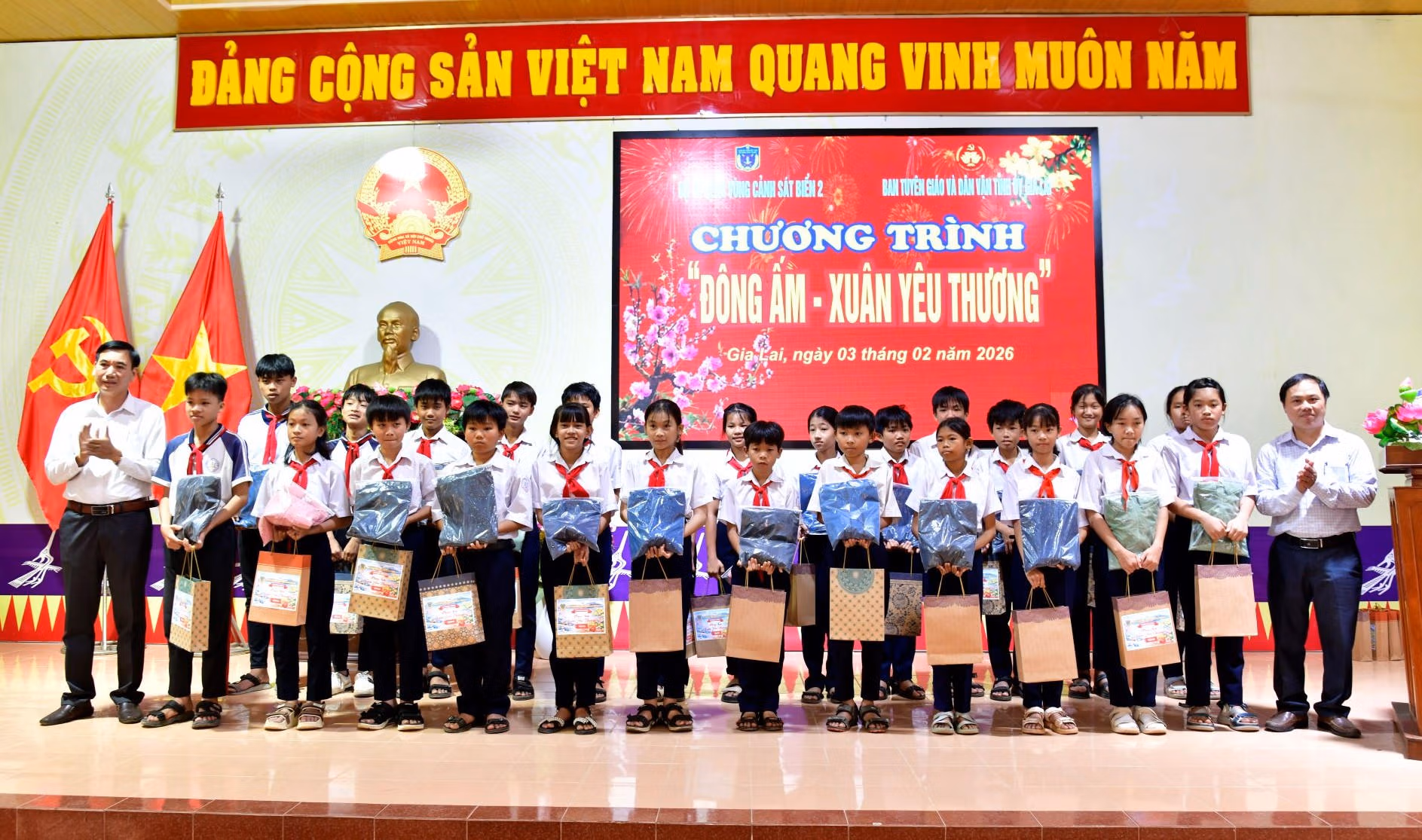 Ngày 3/2, tại phường Tam Quan, tỉnh Gia Lai, Bộ Tư lệnh Vùng Cảnh sát biển 2 phối hợp với Ban Tuyên giáo và Dân vận Tỉnh ủy Gia Lai tổ chức Chương trình “Đông ấm-Xuân yêu thương” mùa thứ 7 năm 2026, hướng đến chăm lo cho học sinh và các gia đình có hoàn cảnh khó khăn trên địa bàn.