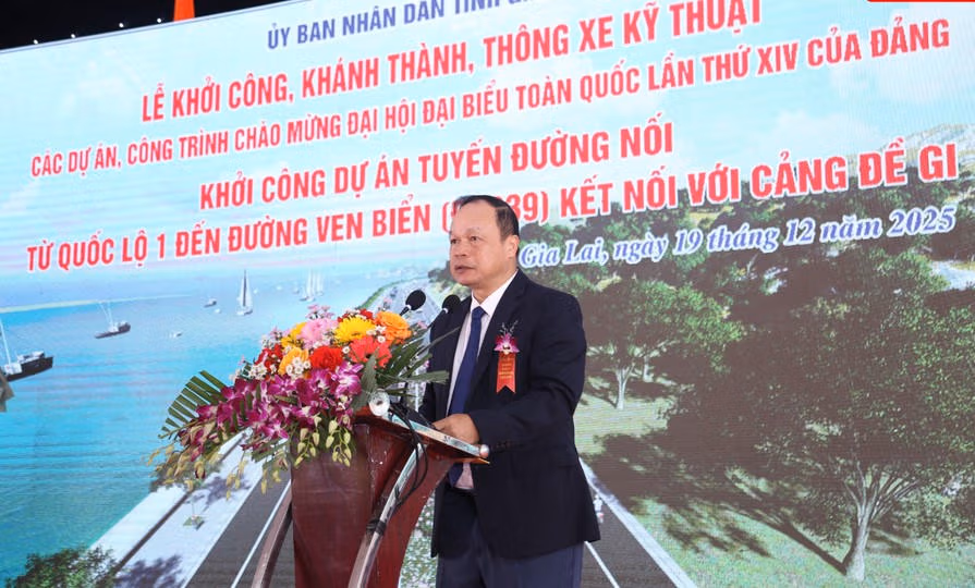 Phát biểu tại buổi lễ khởi công, Phó Chủ tịch UBND tỉnh Gia Lai Dương Mah Tiệp cho biết, Dự án Tuyến đường nối từ quốc lộ 1 đến đường ven biển (ĐT.639) kết nối với Cảng Đề Gi là một trong những dự án giao thông trọng điểm của tỉnh, được ưu tiên đầu tư trong giai đoạn 2025-2030.