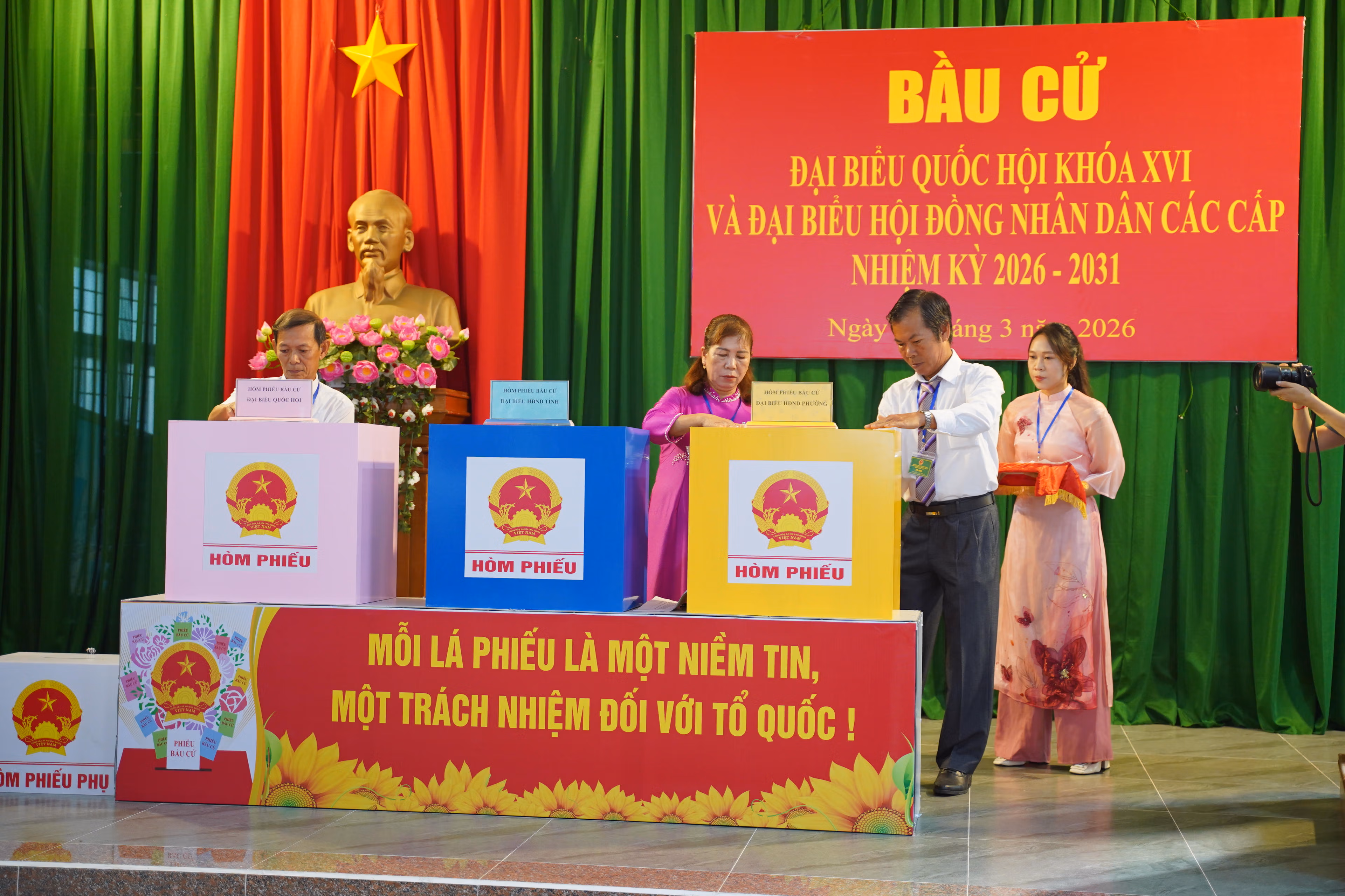 Ngay sau đó, Tổ bầu cử công bố thể lệ bầu cử, phổ biến nội quy phòng bỏ phiếu và tiến hành kiểm tra, niêm phong hòm phiếu chính, hòm phiếu phụ dưới sự chứng kiến của đại diện cử tri. Các khâu được thực hiện công khai, minh bạch, đúng quy định của pháp luật, tạo sự tin tưởng trong nhân dân.