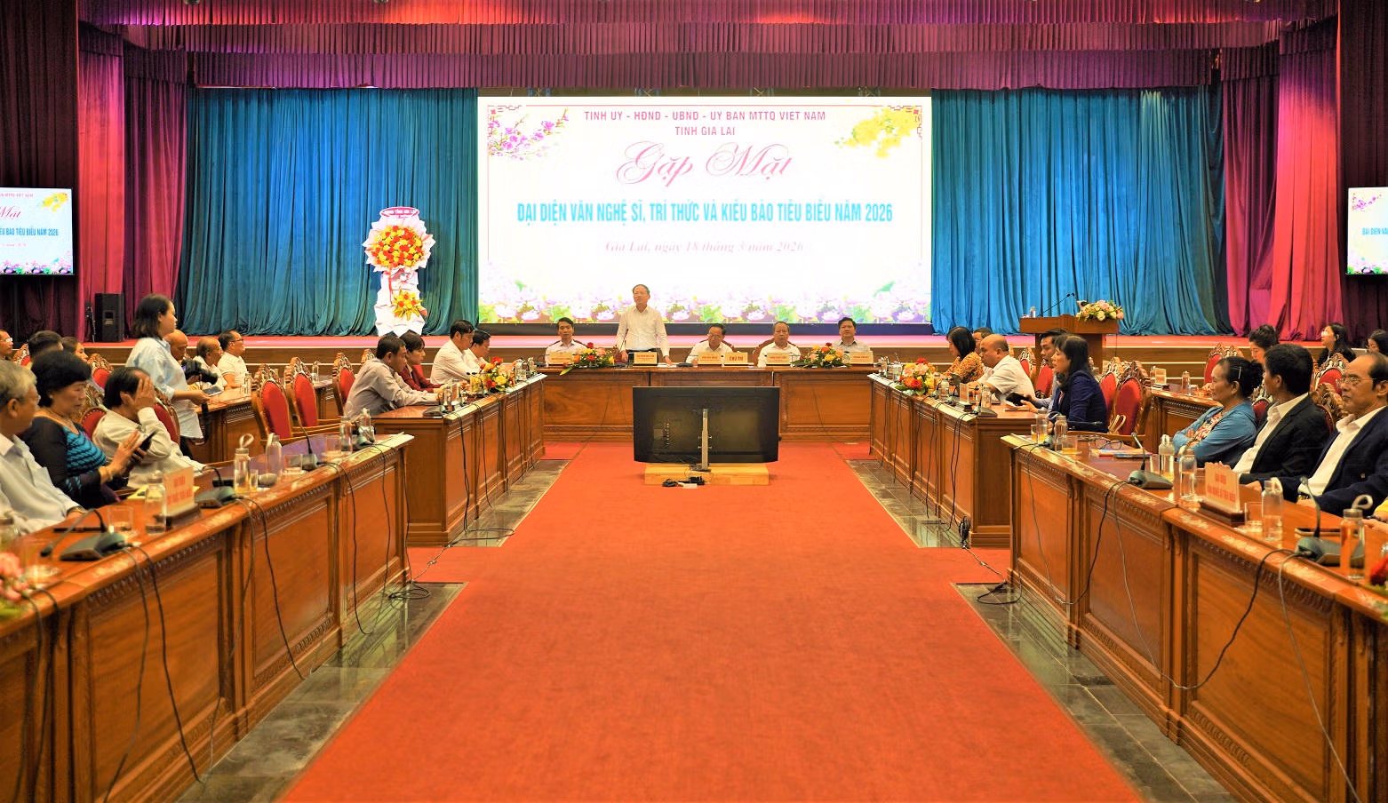 Dự và chủ trì buổi gặp mặt có Bí thư Tỉnh ủy Thái Đại Ngọc; Chủ tịch UBND tỉnh Phạm Anh Tuấn; Phó Bí thư Tỉnh ủy Châu Ngọc Tuấn; Phó Bí thư Tỉnh ủy, Chủ tịch Ủy ban MTTQ Việt Nam tỉnh Nguyễn Ngọc Lương cùng đại diện lãnh đạo các sở, ban, ngành tỉnh và 150 đại biểu đại diện văn nghệ sĩ, tri thức và kiều bào tiêu biểu tỉnh Gia Lai.