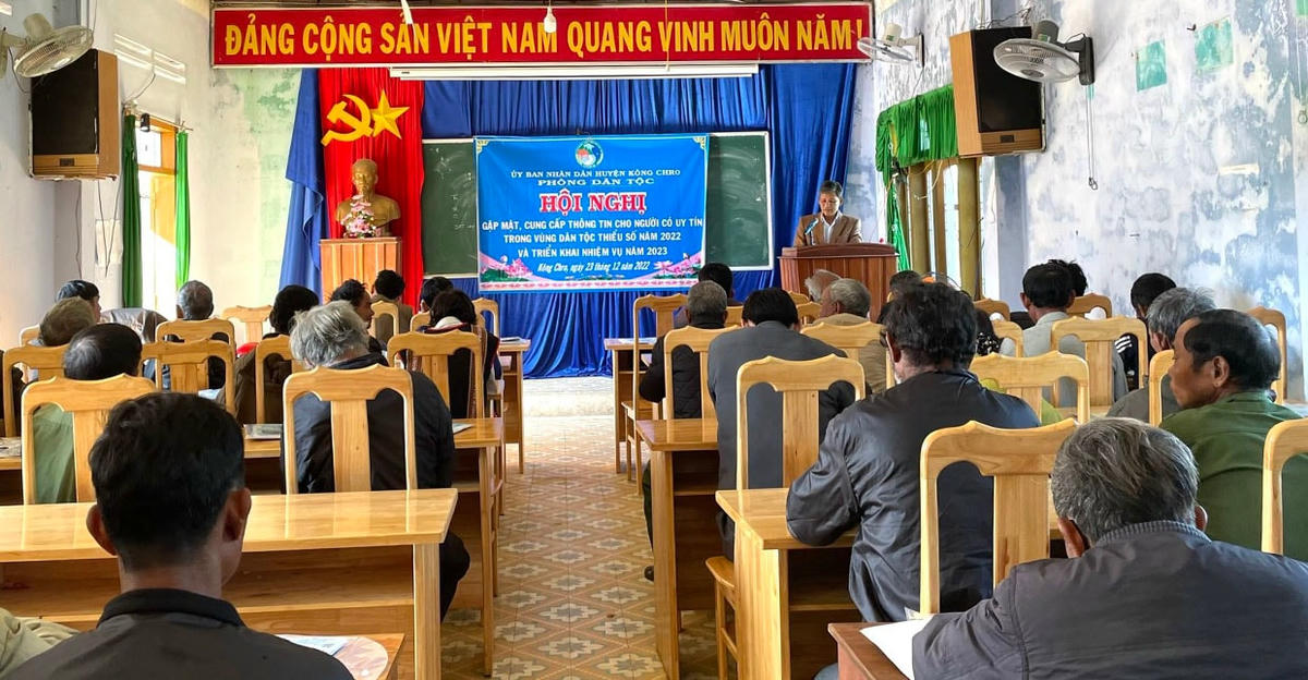 Ngày 25/12, UBND huyện Kông Chro (Gia Lai) tổ chức Hội nghị gặp mặt 64 người có uy tín trong vùng đồng bào dân tộc thiểu số (DTTS) năm 2022 tại địa phương.