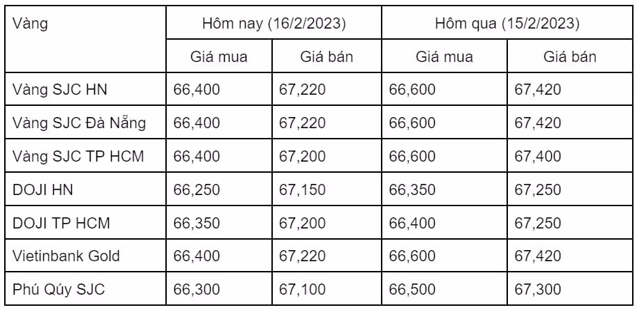Giá vàng trong nước cập nhật sáng 16/2 như sau: