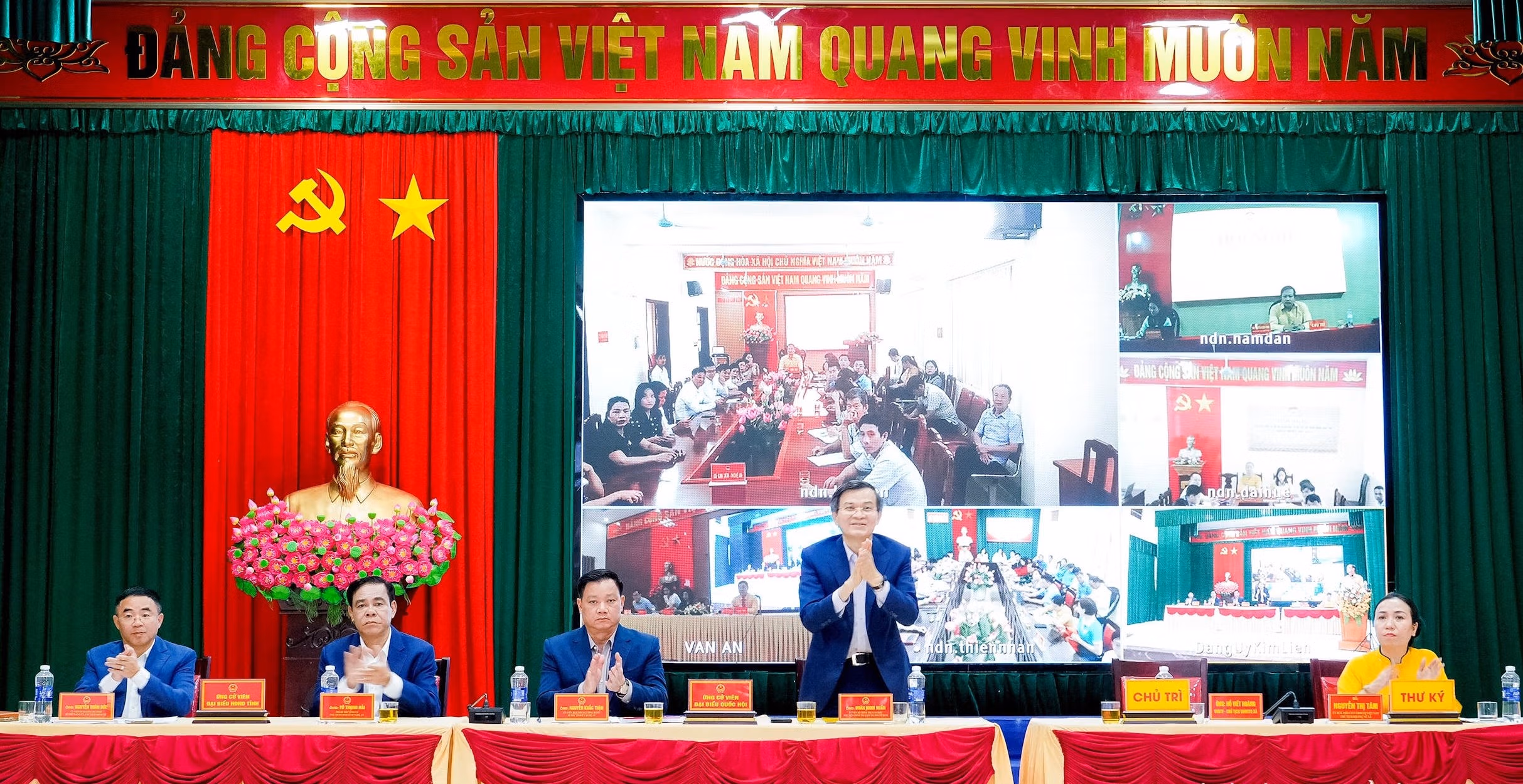 Ngày 2/3, Ban Thường trực Ủy ban MTTQ tỉnh Nghệ An tổ chức hội nghị tiếp xúc cử tri giữa những người ứng cử đại biểu Quốc hội khóa XVI, đại biểu HĐND tỉnh nhiệm kỳ 2026–2031 với cử tri 5 xã: Kim Liên, Vạn An, Nam Đàn, Thiên Nhẫn và Đại Huệ. Hội nghị được tổ chức theo hình thức trực tiếp tại trụ sở Đảng ủy xã Kim Liên, kết nối trực tuyến đến các điểm cầu còn lại, bảo đảm đông đảo cử tri theo dõi.
