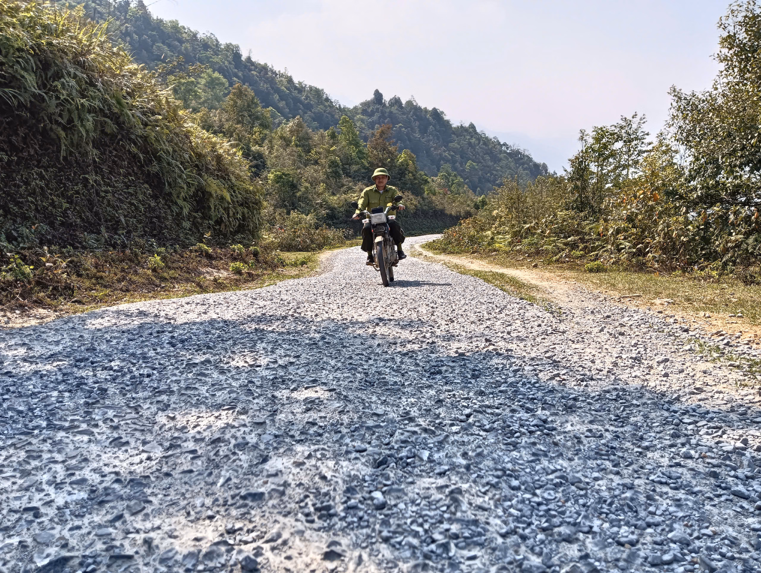 Tuy nhiên, chỉ sau ít phút, chúng tôi thích thú với cảnh sắc thiên nhiên, thời tiết bao nhiêu thì thất vọng với đường đi bấy nhiêu. Đường nhỏ hẹp, dốc khúc khuỷu, nham nhở với ổ voi, "sống trâu", như những vết “sẹo” làm xấu đi bức tranh thiên nhiên vốn rất đỗi nên thơ.
