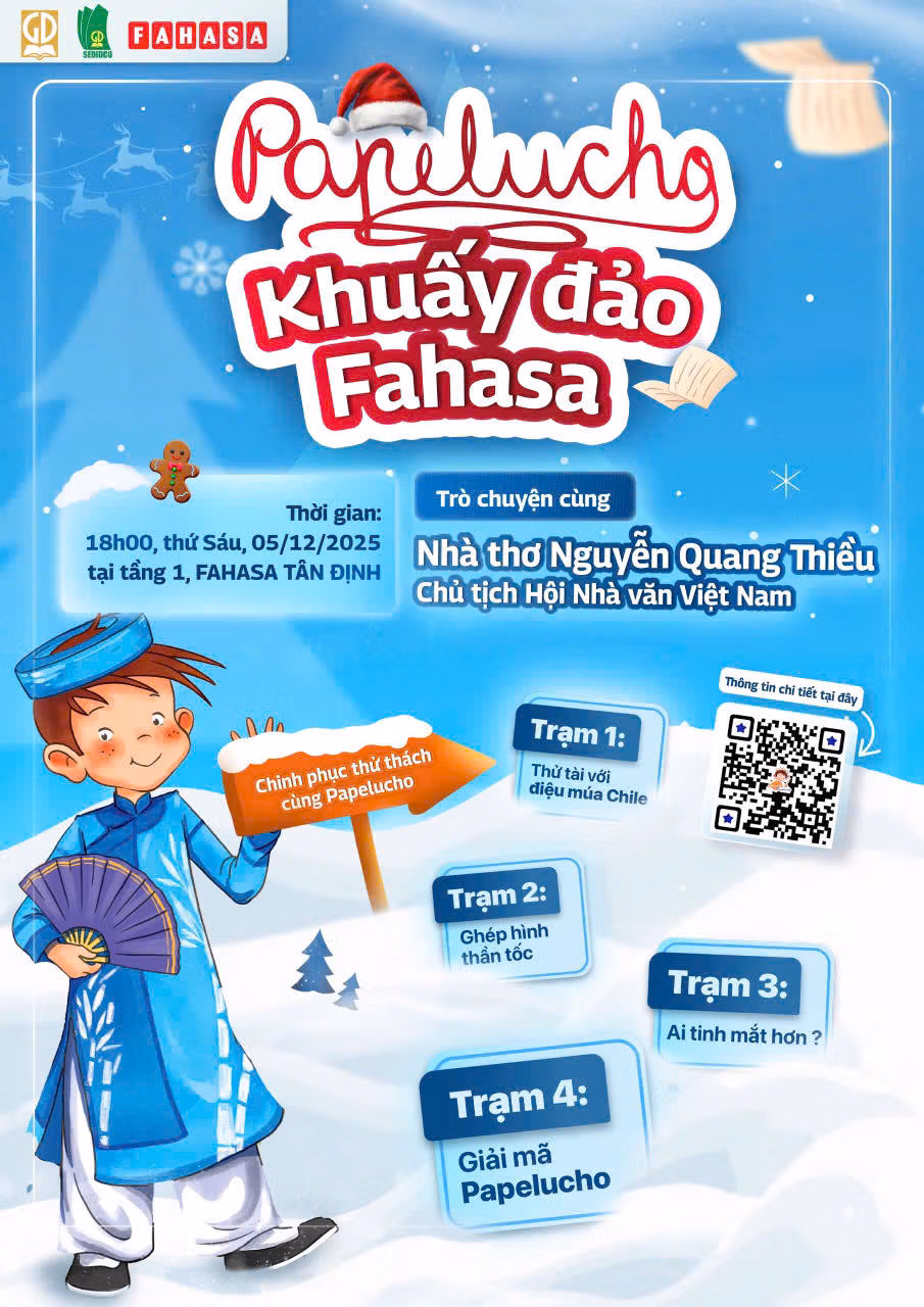 Đặc biệt, nhân dịp này, ba tập đầu tiên của bộ truyện Papelucho cũng đã có mặt tại hệ thống Nhà sách FAHASA từ ngày 28/11/2025. Cha mẹ và các em thiếu nhi có thể ghé hệ thống nhà sách FAHASA để cùng nhau bắt đầu một hành trình đọc đầy cảm hứng và đáng nhớ và cập nhật tiến trình ra mắt đủ 12 tập.