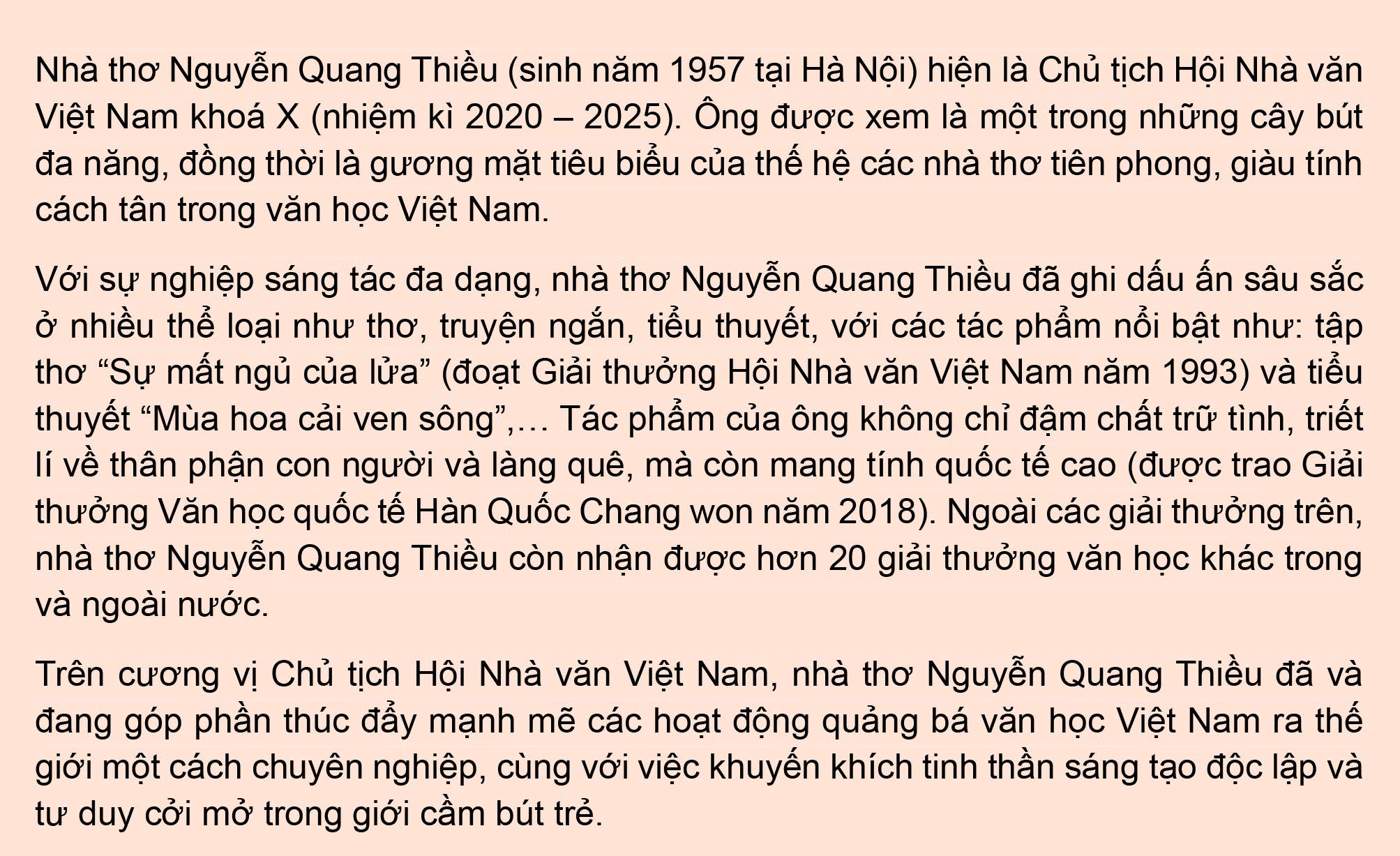 Giao lưu cùng nhà thơ Nguyễn Quang Thiều, chủ đề “từ đọc đến viết - hành trình phát triển ngôn ngữ”