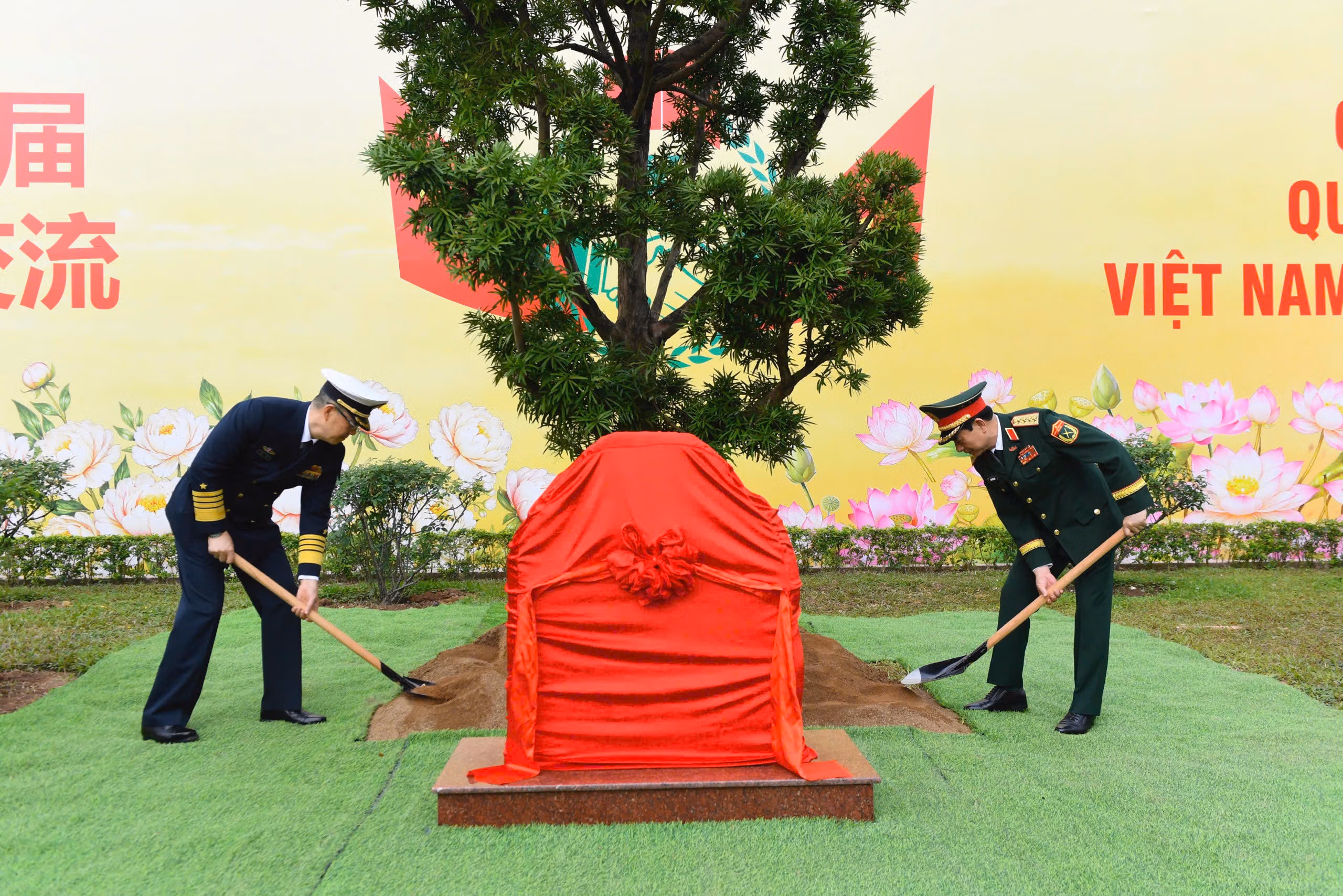 Hai Bộ trưởng đã cùng trồng cây hữu nghị trong khuôn viên Cửa khẩu Quốc tế Móng Cái và chụp ảnh lưu niệm cùng các đại biểu hai đoàn Việt Nam, Trung Quốc.