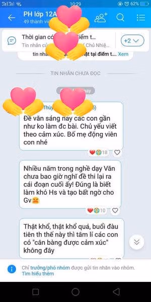 "Nhiều năm trong nghề dạy Văn, chưa bao giờ nghĩ đề thi lại ra cái đoạn cuối ấy! Đúng là làm khó học sinh và tạo bất ngờ cho giáo viên" - cô giáo bày tỏ lo lắng, mong bố mẹ động viên các con trong các buổi thi tiếp theo.
