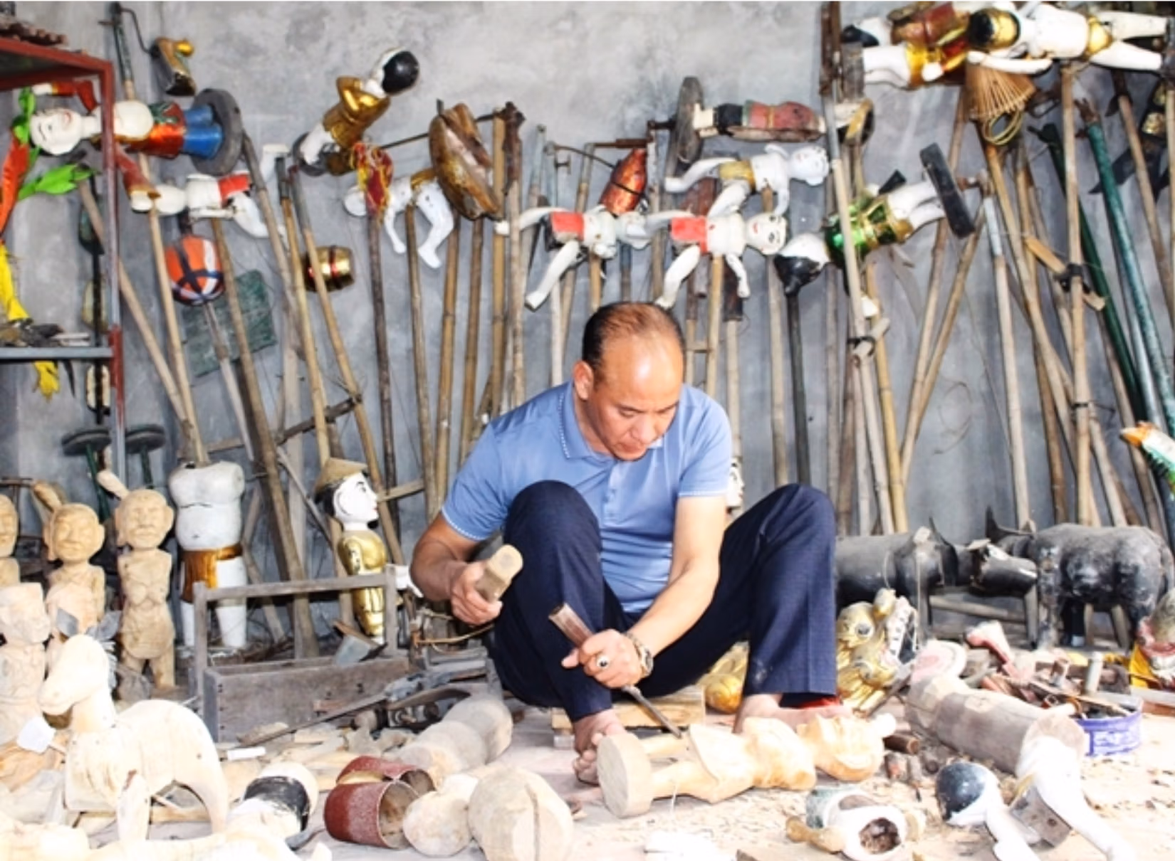 Ông là một trong số ít những người trong thôn vừa biểu diễn múa rối, vừa trực tiếp chế tác các con rối. Hiện nay, bộ sưu tập con rối của ông đã có hơn 1.000 sản phẩm với chủ đề đa dạng, như: đời sống nông thôn, các trò dân ca, dân vũ, con vật trong tứ linh…