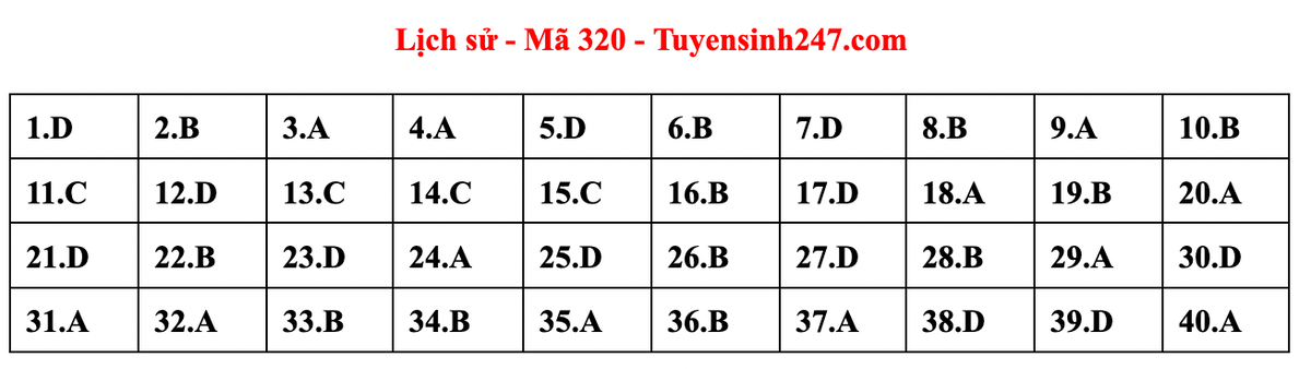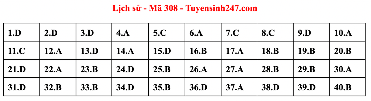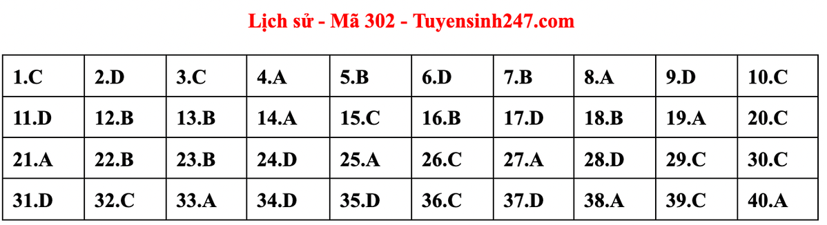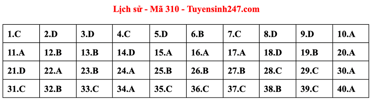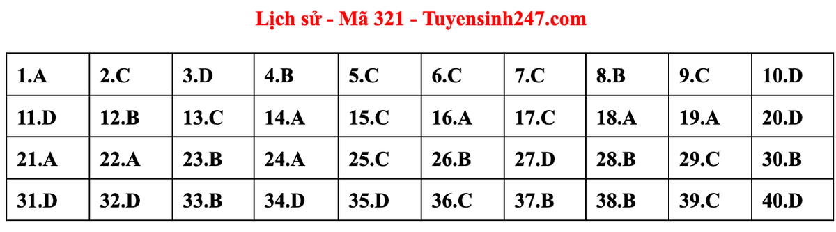 Thí sinh và phụ huynh tham khảo gợi ý đáp án môn Lịch sử kỳ thi tốt nghiệp tốt nghiệp THPT năm 2023 theo mã đề do giáo viên của Hệ thống giáo dục HOCMAI và Tuyensinh247 thực hiện.
