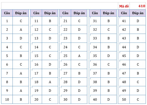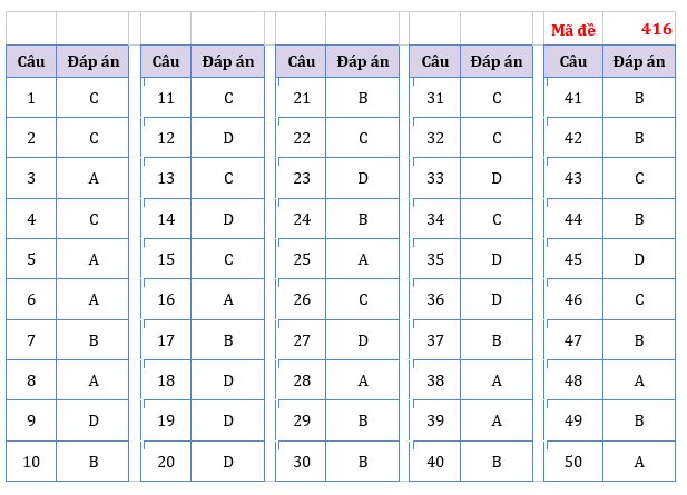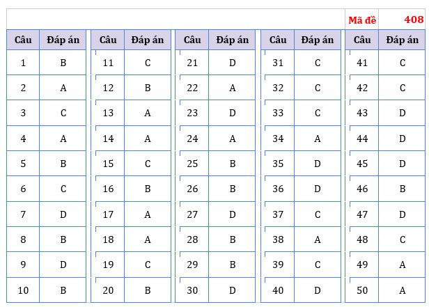 Chúng tôi sẽ tiếp tục cập nhật các mã đề còn lại...