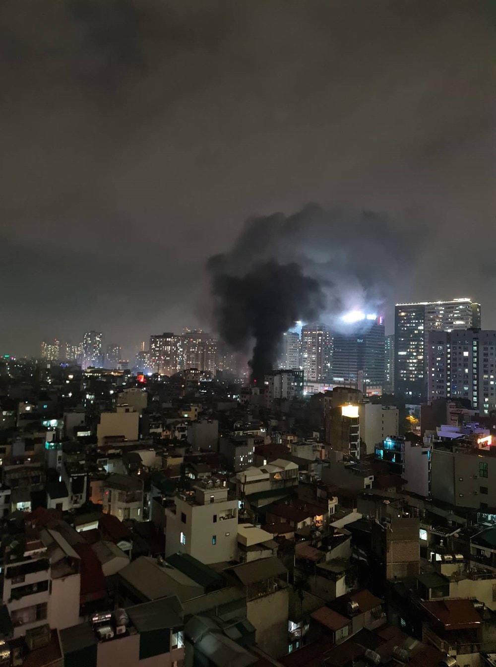 Đám cháy bắt đầu từ một cửa hàng kim khí trên phố Nhân Hòa, sau đó lan rất nhanh 2 ngôi nhà liền kề tạo nên cột khói cao hàng chục mét bay lên cao.