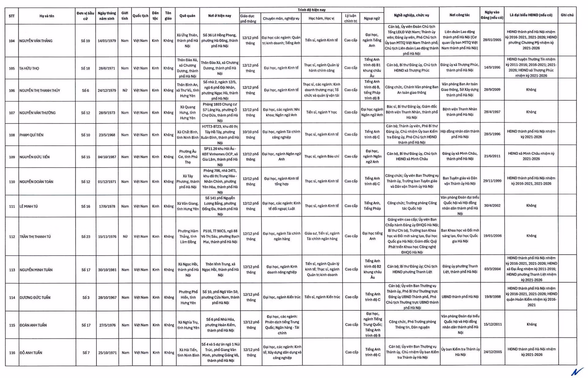 Danh sách những người trúng cử đại biểu HĐND thành phố Hà Nội khoá XVII, nhiệm kỳ 2026-2031gồm: