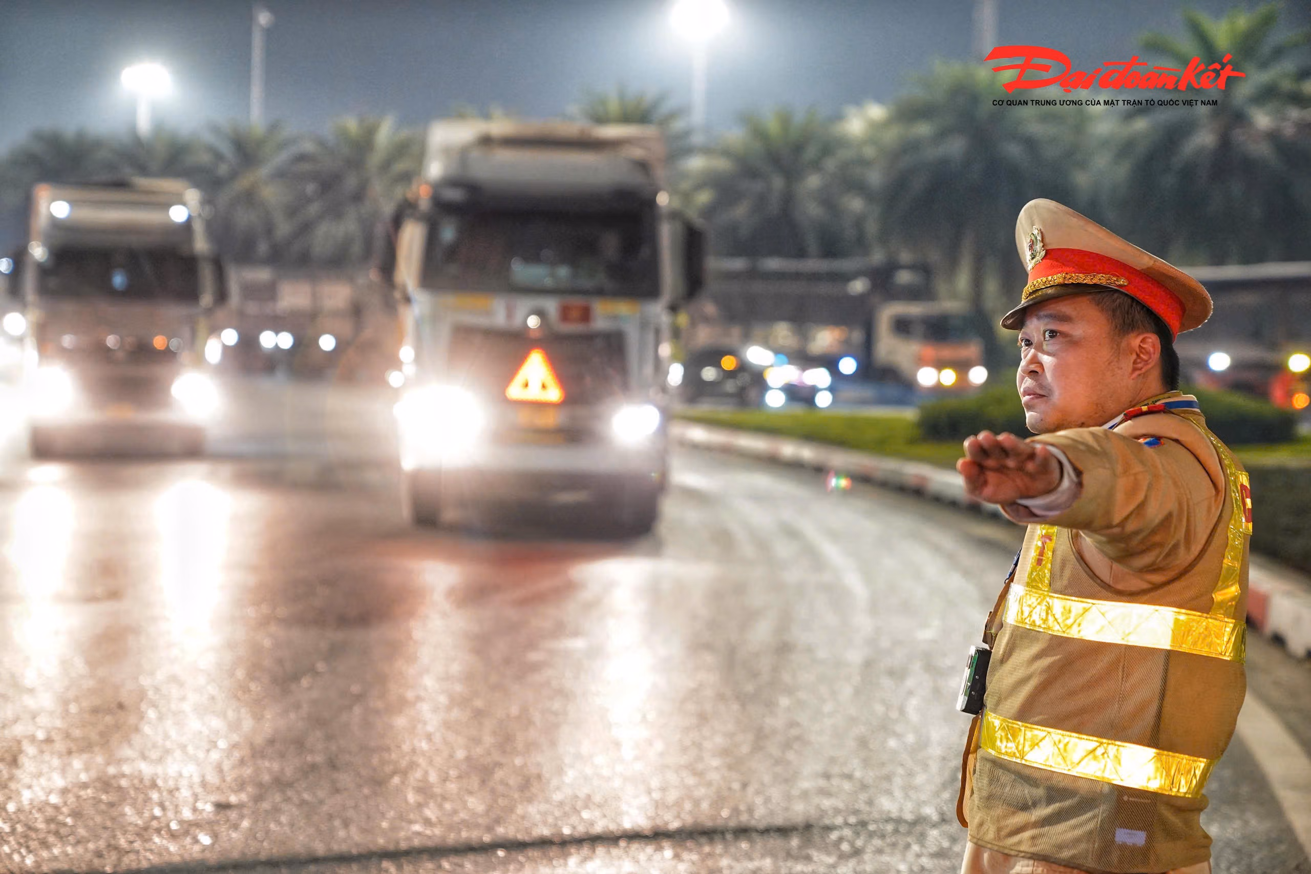 "Đồng thời, tại các nút giao trọng điểm đều bố trí cán bộ trực tiếp phân luồng, hướng dẫn xe tải trọng lớn di chuyển khi đến giờ được phép lưu thông, qua đó hạn chế nguy cơ xung đột giao thông", Thiếu tá Ngô Văn Tâm cho hay.