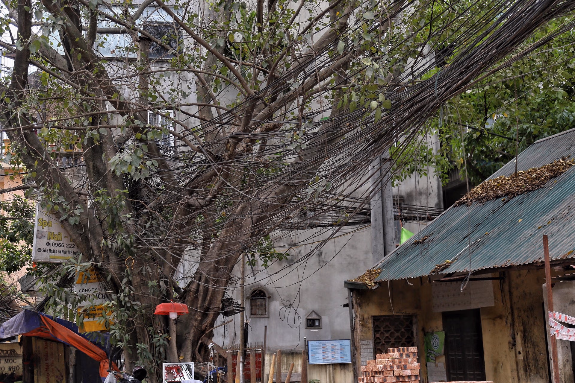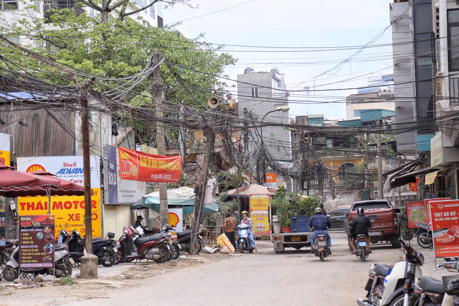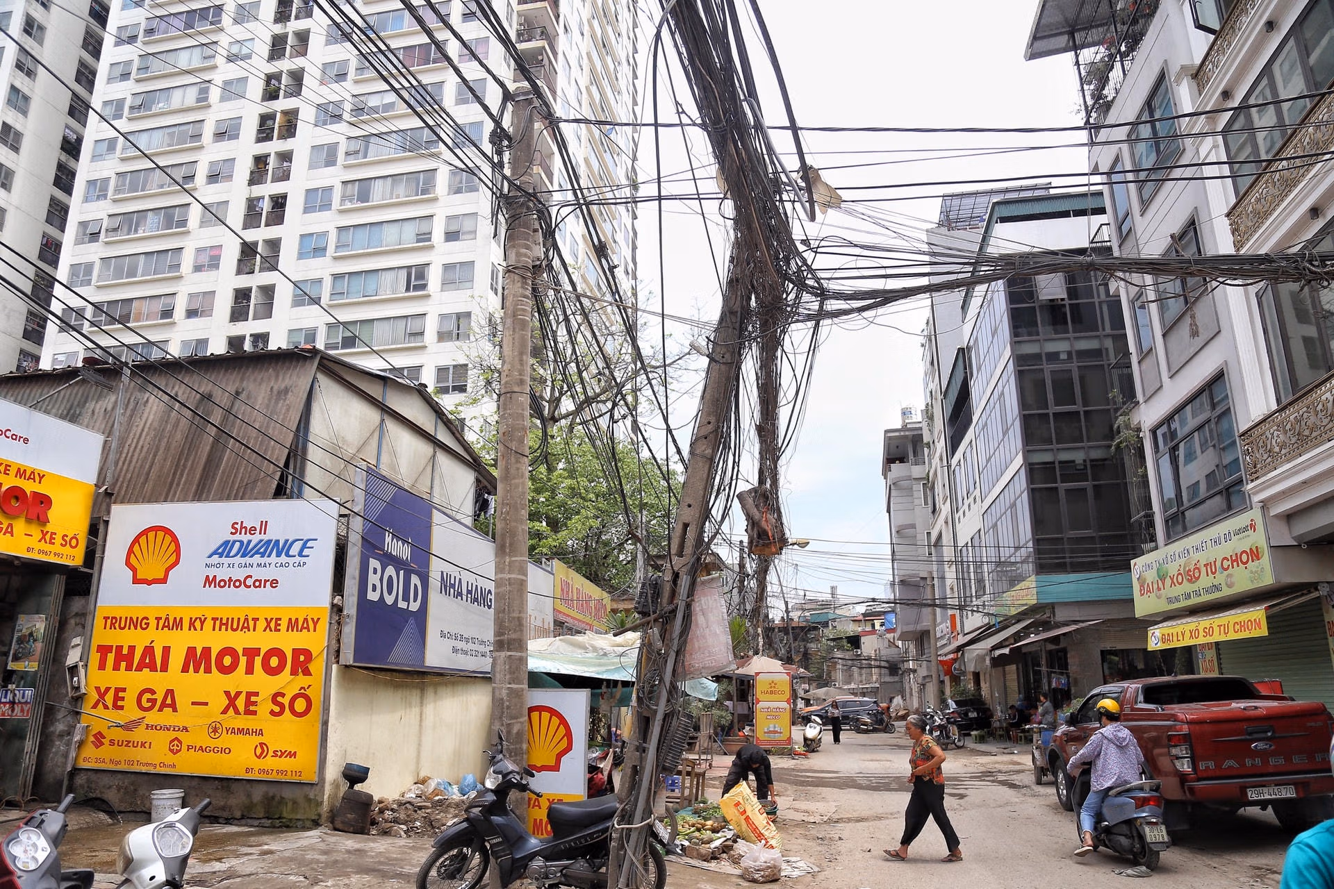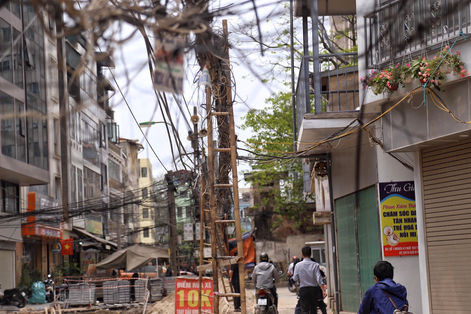 Hà Nội: Dây điện, cáp viễn thông như 'nhả tơ' tại nhiều tuyến phố
