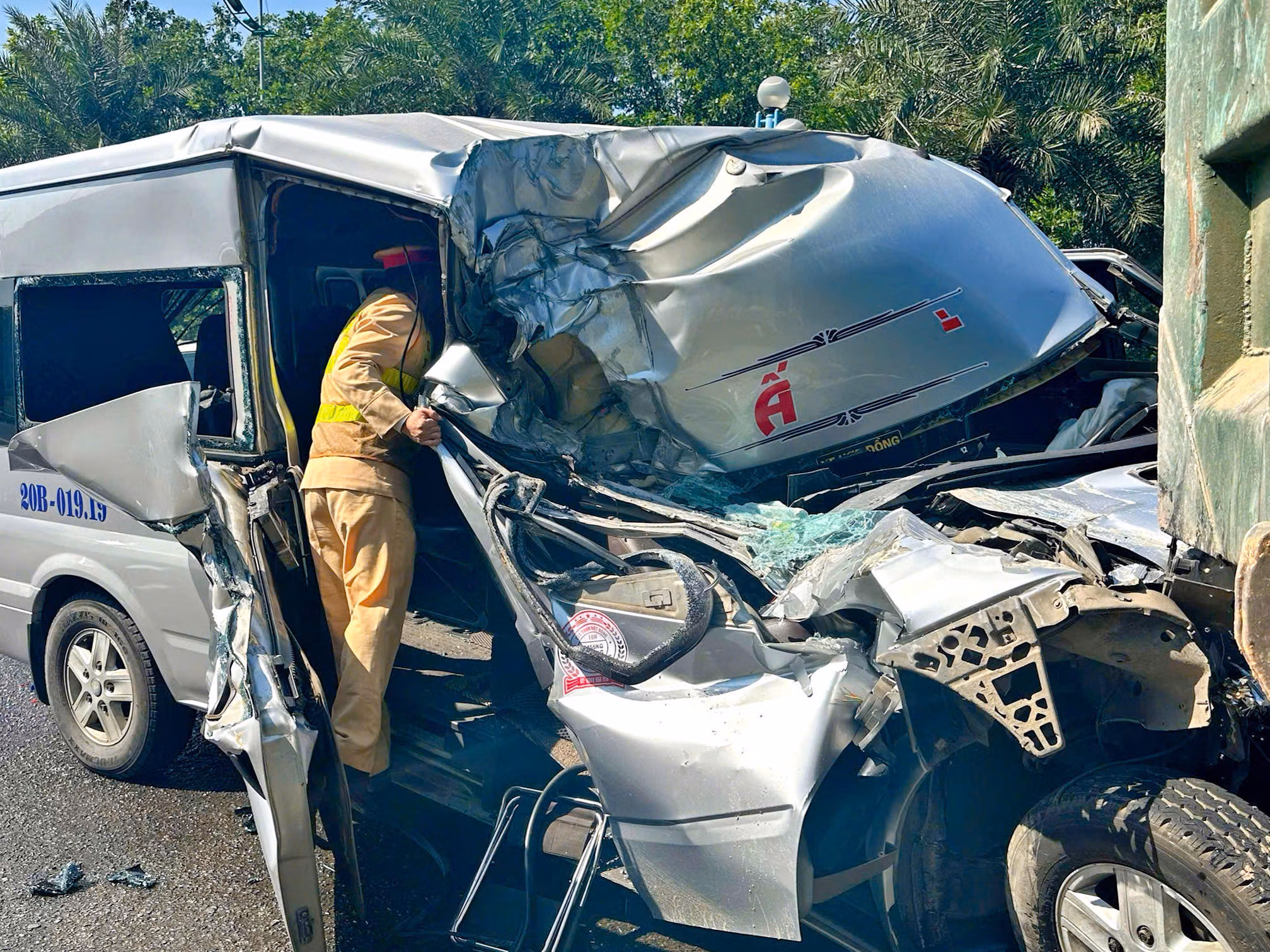 Theo thông tin ban đầu, anh P.Đ.L, sinh năm 1980, trú tại Thái Nguyên điều khiển xe khách loại 16 chỗ BKS 20B-019.xx, trên xe chở một hành khách là chị N.T.T.O, sinh năm 1963, trú tại tỉnh Thái Nguyên (ngồi ghế phụ) di chuyển trên đường Võ Nguyên Giáp hướng đi Sân bay Nội Bài.