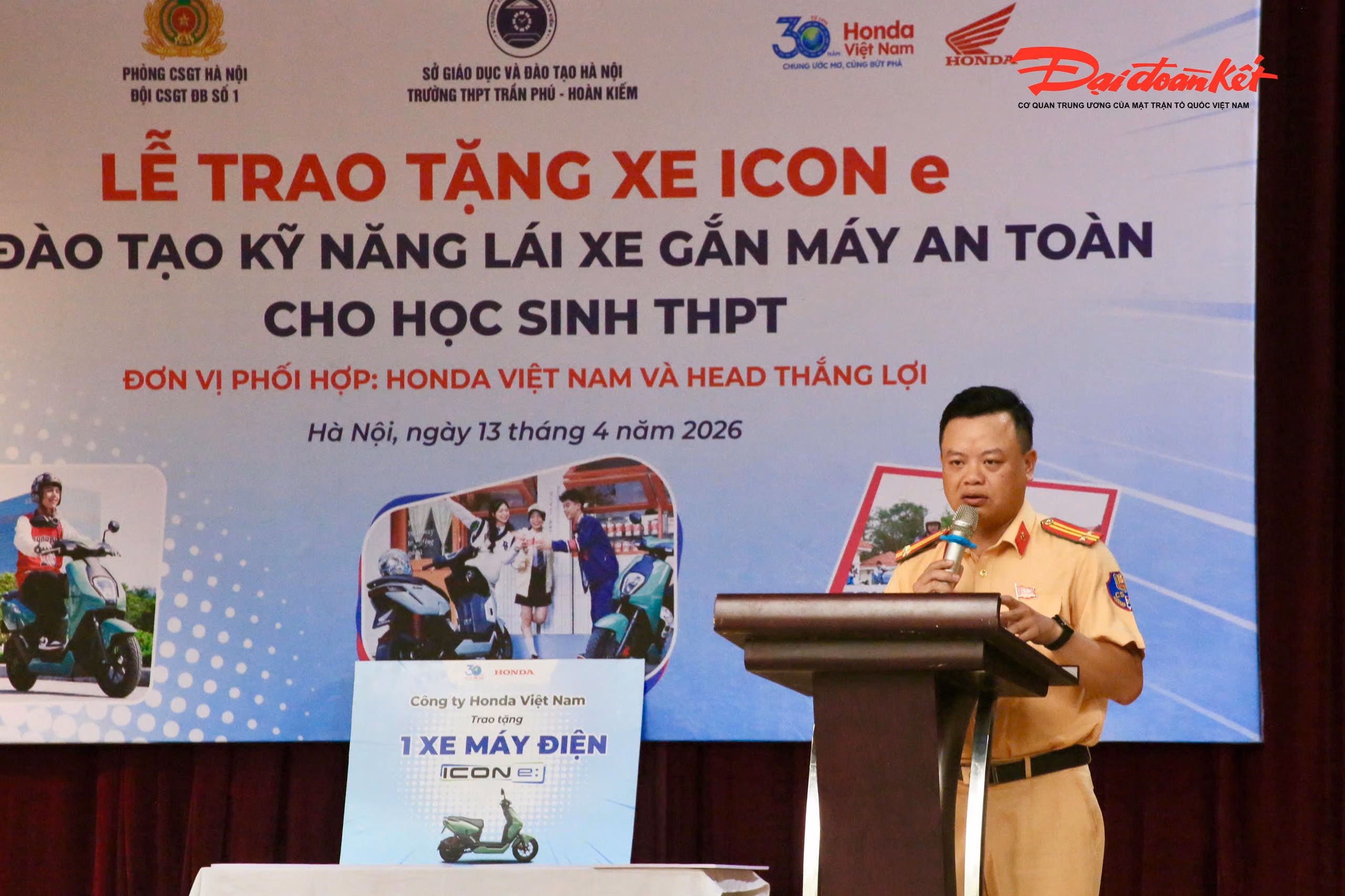 Chiều 13/4, Đội CSGT đường bộ số 1 (Công an TP Hà Nội) phối hợp tổ chức tuyên truyền pháp luật và hướng dẫn kỹ năng lái xe an toàn cho 1.250 học sinh, giáo viên Trường THPT Trần Phú, góp phần nâng cao ý thức chấp hành giao thông trong lứa tuổi học đường.