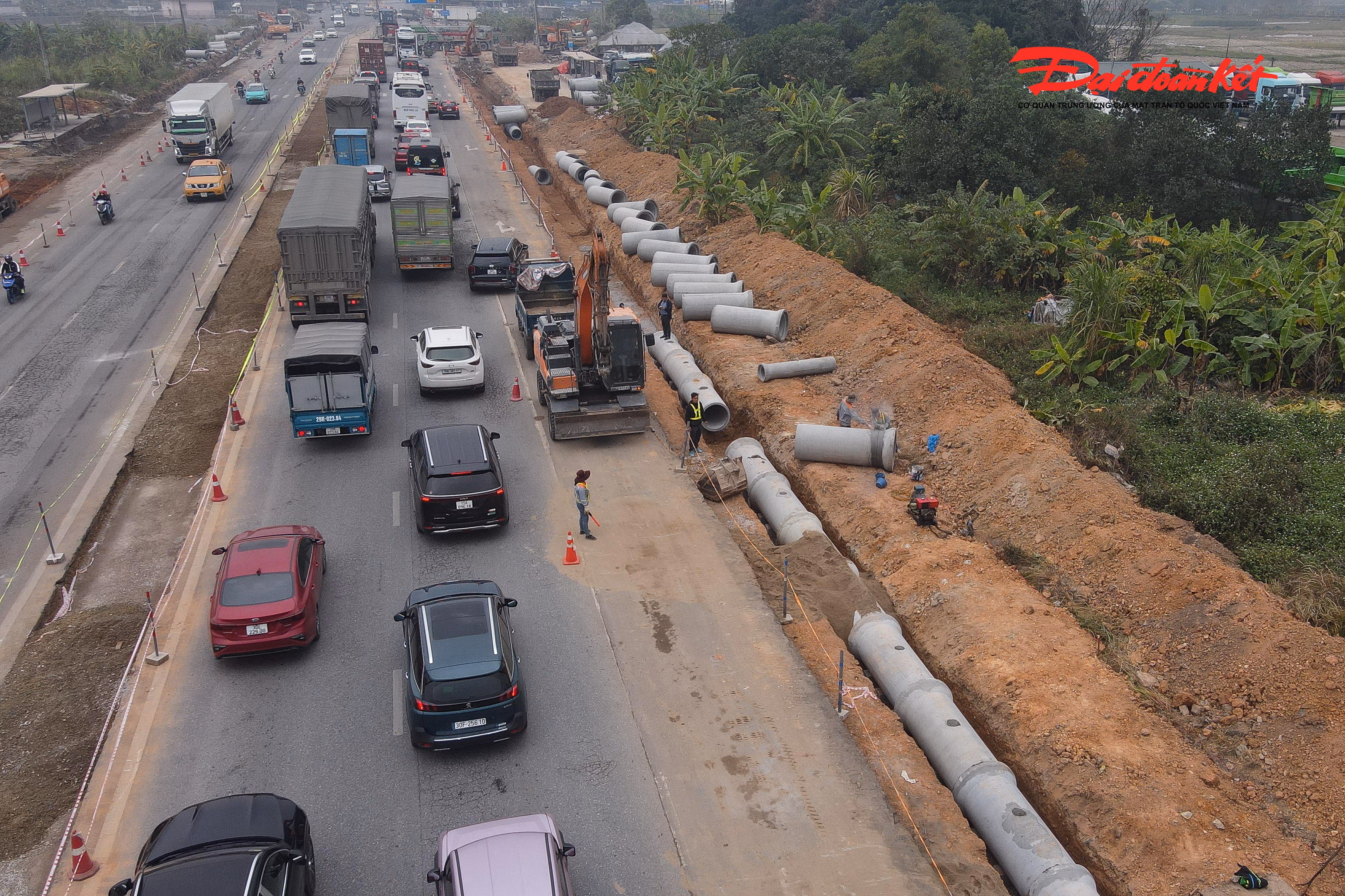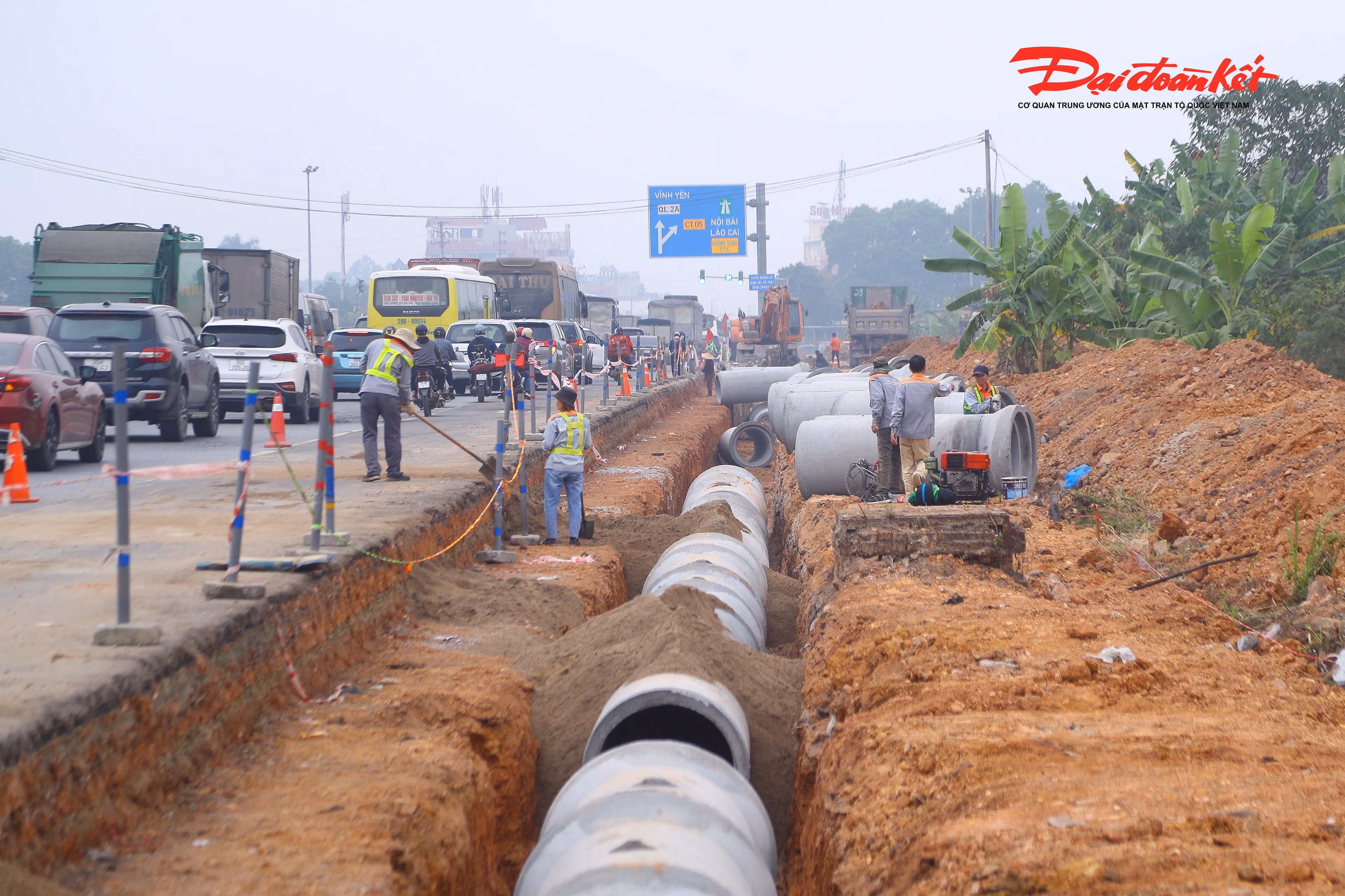Ngay sau khi UBND thành phố Hà Nội ban hành Lệnh khẩn cấp, Ban Duy tu các công trình hạ tầng giao thông đã phối hợp với nhà thầu huy động máy móc, thiết bị cùng gần 100 công nhân tổ chức thi công tại nút giao Quốc lộ 2 - đường dẫn cao tốc Nội Bài - Lào Cai, phấn đấu thông xe vào quý 1/2026 nhằm sớm giảm ùn tắc giao thông khu vực cửa ngõ Thủ đô.