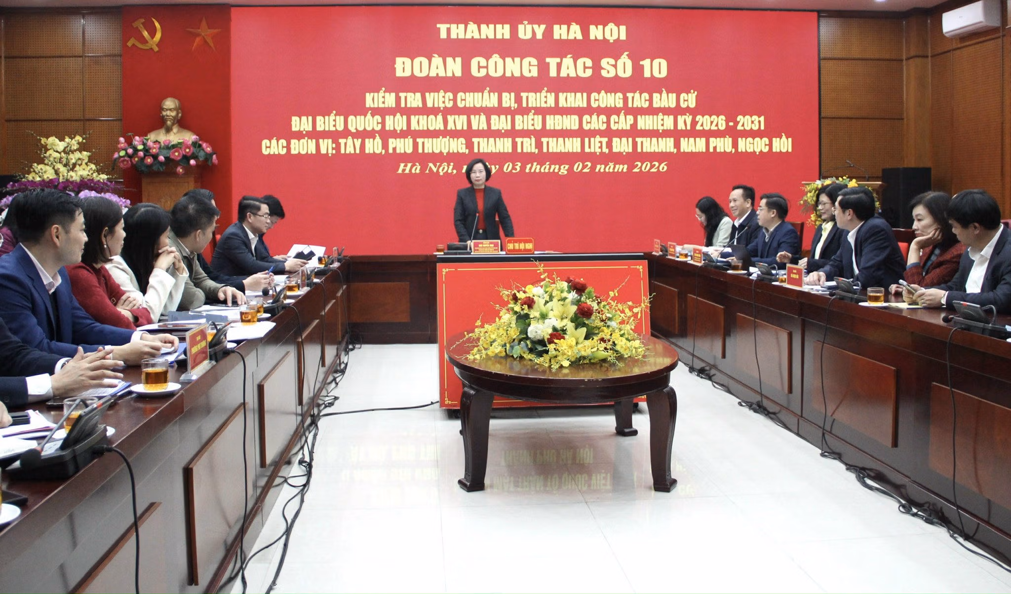 Chiều ngày 3/2, Chủ tịch Ủy ban MTTQ Việt Nam TP, Phó Chủ tịch Ủy ban Bầu cử TP Hà Nội Bùi Huyền Mai, Trưởng đoàn công tác số 10 của Thành ủy Hà Nội chủ trì buổi kiểm tra việc chuẩn bị, triển khai công tác bầu cử ĐBQH khóa XVI, đại biểu HĐND các cấp nhiệm kỳ 2026 - 2031 của 7 xã, phường.