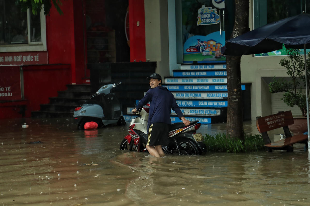 Sau trận mưa lớn từ đêm 27/9 đến ngày 28/9, nhiều tuyến đường nội bộ trong khu đô thị Geleximco Lê Trọng Tấn (Hà Nội) bị ngập trong 'biển' nước...