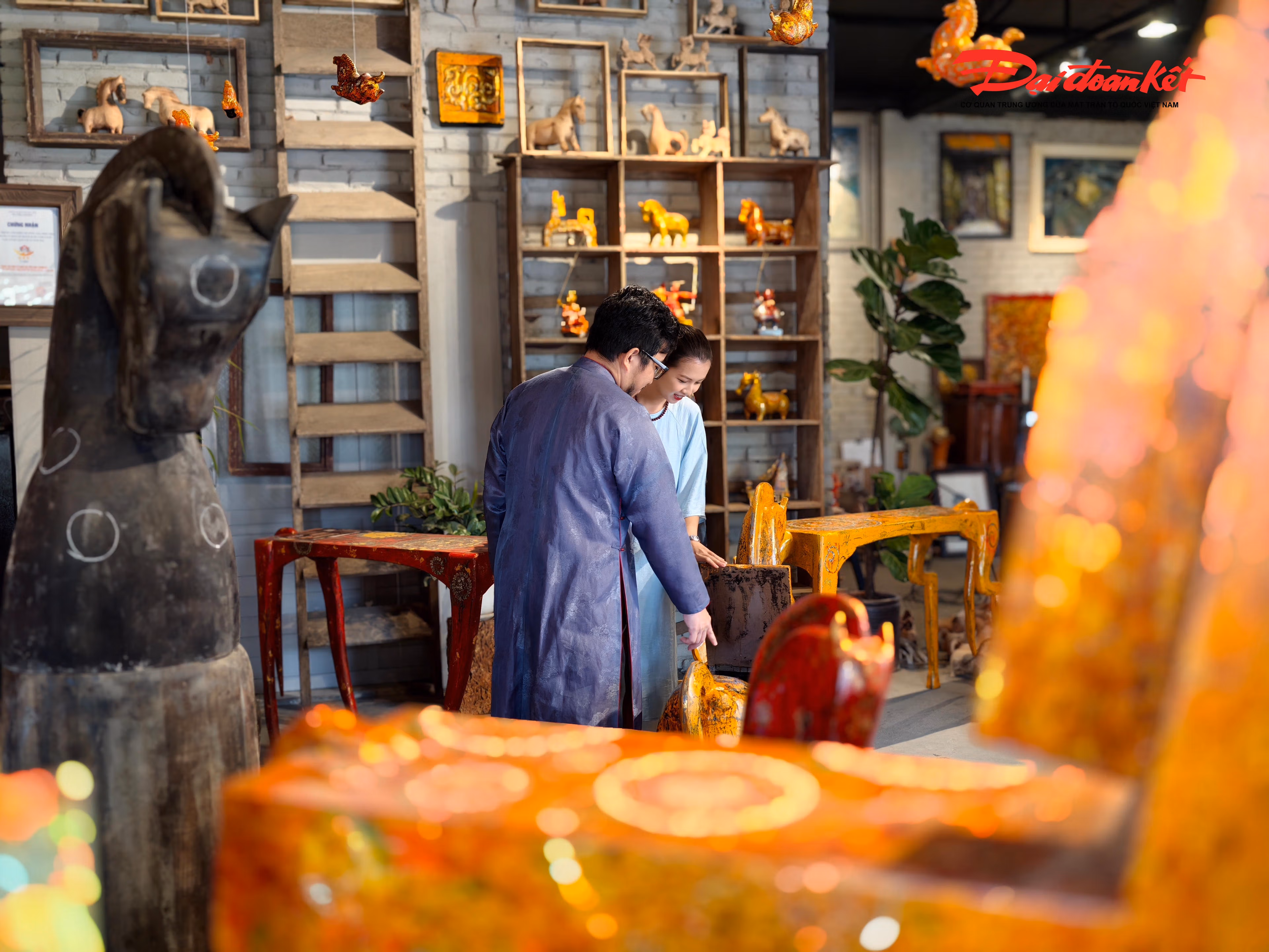 Trong không gian làng cổ Đường Lâm thấm đẫm dấu ấn thời gian, các tác phẩm ngựa sơn mài hiện diện tự nhiên, như được đánh thức bởi chính bối cảnh văn hóa nơi đây. Dịp giáp Tết, bên cạnh thăm đình Mông Phụ, nhà cổ hay thưởng thức chè lam, du khách có thể dừng lại ngắm “Bát Mã Truy Phong” để cảm nhận một nhịp đón Xuân chậm rãi, sâu lắng, nơi nghệ thuật hòa vào đời sống.