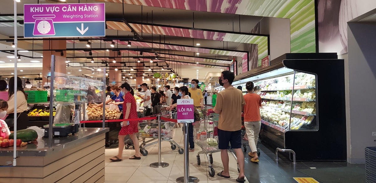 Một số hình ảnh người dân tập trung mua sắm đông người tại hai siêu thị Aeon Mall Long Biên và Big C Long Biên trong khi Hà Nội đang gồng mình thực hiện giãn cách xã hội: