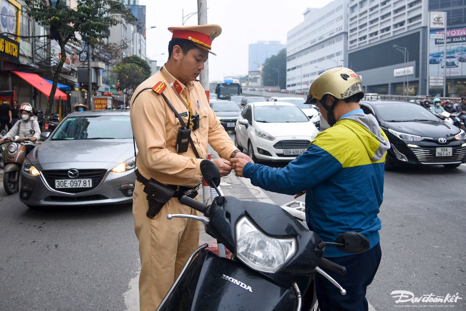 Hà Nội: Nhiều xe máy vẫn ngang nhiên di chuyển trên đường Vành đai 2 trên cao Thứ Sáu 22/03/2024 15:15 (GMT+7) Sau vụ hai thanh niên đi trên đường Vành đai 2 đánh người đi ô tô vào cuối tháng 2/2024, đến nay tình trạng xe máy vi phạm vẫn nhan nhản. Đường Vành đai 2 trên cao được thiết kế với 4 làn xe chạy ở hai chiều, tốc độ lưu thông tối đa 80 km/h, đoạn cầu nhánh 60 km/h. Đây là đường chỉ dành cho ô tô nên việc các xe máy đi lên đường rất nguy hiểm, tiềm ẩn nguy cơ xảy ra tai nạn giao thông.Song, thời gian qua hàng loạt xe máy vẫn ngang nhiên bất chấp biển cấm để di chuyển.Do đó, sáng nay (22/3), Đội 3 Phòng CSGT TP Hà Nội đã xử lý hàng loạt trường hợp xe gắn máy, mô tô đi lên đường trên cao Vành đai 2.Đại úy Nguyễn Cao Sơn, cán bộ Đội CSGT số 3 cho hay, thời gian qua, đội thường xuyên xử lý nhiều xe máy di chuyển lên đường Vành đai 2 trên cao, tuy nhiên do thiếu ý thức, thiếu quan sát nên vẫn nhiều người vi phạm.Để tránh ùn tắc ở phía dưới, các xe máy thường xuyên di chuyển lên tuyến đường Vành đai 2.Thậm chí, người điều khiển xe máy còn vi phạm lỗi không đội mũ bảo hiểm.Thanh niên mặc áo khoác màu đen cho biết, do vội quá nên đi lên làn đường dành cho ô tô. "Em đang học gần Ngã Tư Sở. Lần sau, em không dám đi lên nữa vì bị xử phạt nặng quá", người này phân trần.Căn cứ Nghị định 100/2019/NĐ-CP của Chính phủ, xe máy bị phạt tiền từ 400.000 - 600.000 đồng với lỗi đi vào đường cấm, khu vực có biển báo hiệu có nội dung cấm đi vào đối với loại phương tiện đang điều khiển. Ngoài ra, chủ phương tiện vi phạm còn bị tước giấy phép lái xe từ 1 - 3 tháng (Theo điểm i khoản 3 và điểm b khoản 10 Điều 6). Trường hợp ngoại trừ là các trường hợp xe ưu tiên đang đi làm nhiệm vụ khẩn cấp theo quy định.Chỉ trong buổi sáng nay, gần 10 trường hợp bị Đội CSGT số 3 xử lý. Lê Khánh