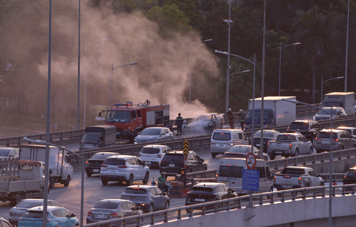 Chiều 29/4, một ô tô 4 chỗ bất ngờ bốc cháy trên đường Vành đai 3 trên cao (đoạn qua hồ Linh Đàm, Hà Nội) khi đang dừng ở làn khẩn cấp. Vụ việc xảy ra đúng giờ tan tầm khiến giao thông ùn ứ cục bộ, lực lượng Cảnh sát PCCC&CNCH và CSGT nhanh chóng có mặt dập lửa, phân luồng; may mắn không có thiệt hại về người.